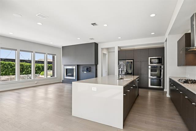 Welcome to 3647 Pistol Creek Drive in Frisco, TX 75034—an extremely well-maintained home in a quiet, highly desirable Frisco neighborhood. This beautiful residence offers exceptional indoor–outdoor living with sliding doors in the living room, abundant windows, and natural light throughout. Outside, enjoy a thoughtfully designed backyard featuring electric shades, a fire pit, lush landscaping, a tall privacy fence, and low-maintenance turf, creating the perfect space to relax or entertain with ease. A three-car garage adds valuable convenience and storage. Inside, the home boasts a chef-inspired kitchen with double ovens and a huge island, ideal for cooking, hosting, and gathering. Four bedrooms feature ensuite baths, providing comfort and privacy for family and guests. Storage is plentiful with generous closets, including an upgraded primary closet outfitted with tailored shelving and custom cabinetry for optimal organization. The primary closet connects directly to the laundry room, complete with a sink for added functionality. This home combines smart design, luxurious touches, and minimal maintenance in an unbeatable Frisco location—truly a rare find.
