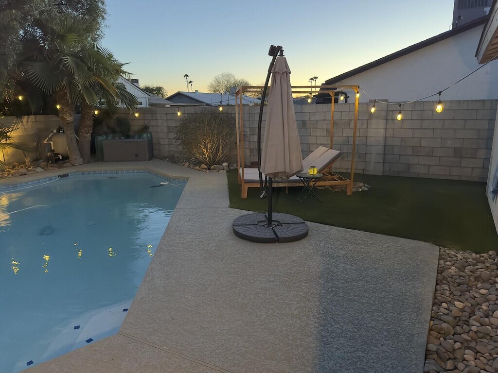 This wonderful home is conveniently located in a quiet neighborhood at Cactus Road and Highway 51 - only 15 minutes to downtown Phoenix,Uptown,Arcadia,North Scottsdale and more. There are two parks within walking distance,with a farmer's market nearby on Saturday mornings at Roadrunner Park. The 4 bed,3 bath home was remodeled in 2020 and has two primary bedrooms with on-suite bathrooms. You'll find white shaker cabinets,quartz countertops,bright natural light,stainless steel appliances,and modern finishes. The backyard is block wall enclosed with lemon and fig trees and a diving pool with new pool equipment. The front of the house has attached covered parking with a 240V outdoor outlet and electric vehicle charger. Roof was replaced in 2022 and solar panel system decreases electricity bill by 60%+ annually on average. Home comes with AprilAire whole home filtration system for clean indoor air year round (filter replaced and maintained by owner). Renter pays for all utilities,optional package for owner to pay water bill and pool maintenance.