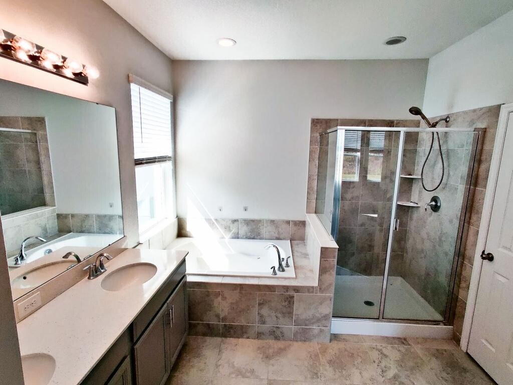 For rent is a charming, almost new constructed 4-bedroom, 2-bath home with a 2-car garage in the picturesque Whaley's Creek neighborhood of St. Cloud. This residence boasts a welcoming open floor plan that encompasses a spacious living room, kitchen, and a delightful breakfast nook. Throughout, you'll find exquisite tile flooring and soaring high ceilings that add to the sense of spaciousness. The modern kitchen is a true highlight, featuring a generously sized island that overlooks the living area. It showcases quartz countertops and a custom subway tile backsplash, offering both style and functionality. The dining room is equally impressive with its tiled floor, and there's a convenient indoor laundry room complete with a full-size washer and dryer. The split floor plan ensures privacy, with the master bedroom suite on one side and three additional bedrooms on the opposite side of the home. The master bedroom is a sanctuary, with a luxurious bathroom that includes a soaking tub, stand-up shower, dual vanity sinks, and a spacious walk-in closet. The bedrooms are carpeted, providing a cozy contrast to the rest of the house. Step outside to a screened lanai that overlooks a lush natural preserve and a generously sized backyard, perfect for outdoor activities and relaxation. The property also includes a two-car garage with an opener for your convenience. The Whaley's Creek community offers fantastic amenities, including a pool, playground, and a clubhouse, ensuring there's always something to do close to home. This fantastic home is available for rent right now and comes with a one-year lease. Don't miss the opportunity to make this beautiful home your own!