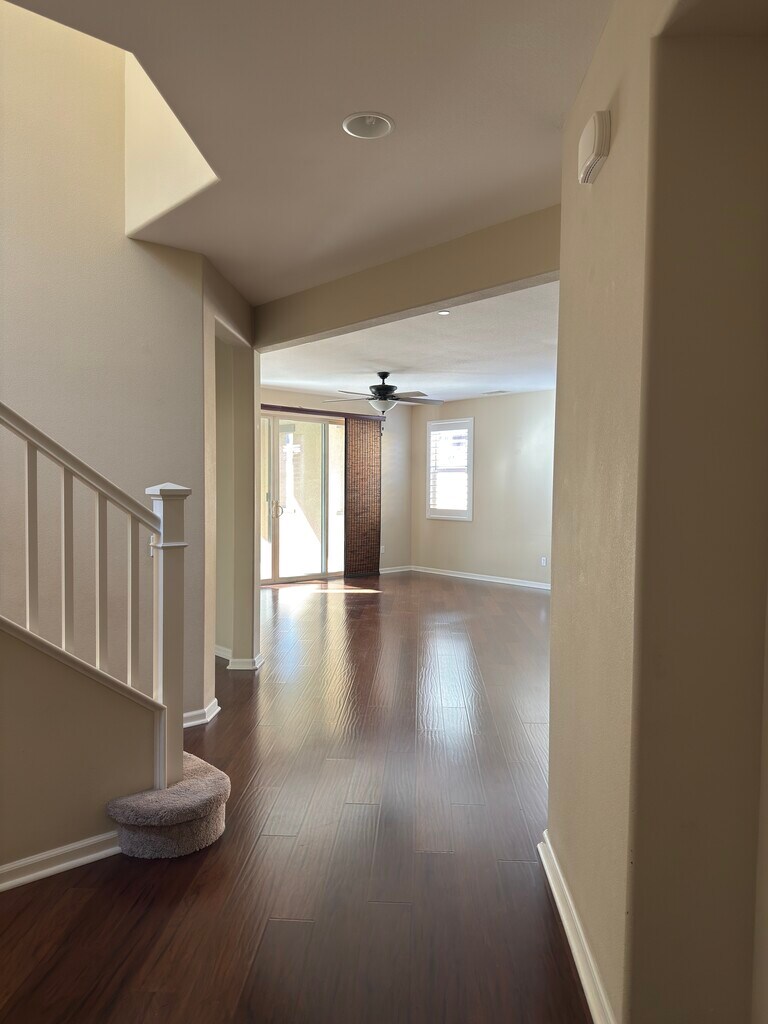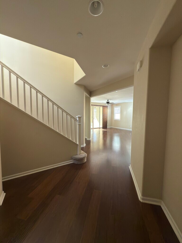 Welcome to this well-maintained 4-bedroom, 3-bathroom single-family home located in the sought-after Cotton Canyon Hills community of Lake Elsinore. Built in 2015 and offering 2,249 sq. ft. of comfortable living space, this home provides modern convenience, energy efficiency, and a warm, inviting atmosphere.The home features hardwood flooring, central A/C, central heating, and a bright open layout perfect for everyday living. The kitchen comes equipped with essential appliances including a refrigerator, dishwasher, microwave, oven, and garbage disposal, along with ample storage and counter space for meal prep and entertaining.The property also includes solar panels to help lower monthly energy expenses and a two-car garage that offers secure parking and additional storage.Outdoor spaces include a welcoming patio area, plus a low-maintenance yard. The home is in the Herk Bouris Elementary School district and is part of the well-maintained Cotton Canyon Hills HOA, which provides beautifully kept surroundings and community standards.This home offers comfort, convenience, and a great location near parks, schools, and community amenities. A wonderful leasing opportunity in a thriving neighborhood.