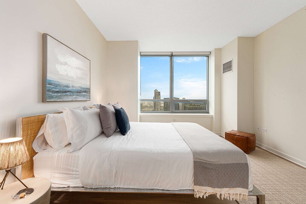 The advertised rate of $18,409/month is the lowest available price, based on a 30 day(s) stay with a move-in date of October 19, 2026. Rates vary depending on the duration of stay, season, and other parameters. For exact pricing and additional pricing components, please visit our website and enter your desired move-in and move-out dates. The rate is applicable when billed upfront; it can be higher if billed in multiple payments. Experience brand-new luxury at 'The Lyric,' a stunning 3-bedroom apartment in West Loop’s vibrant Fulton District. Feel at home with stunning skyline views from your private balcony. This apartment features a Sonos sound system, large Smart TVs, and access to a high-def movie theater in the building. Parking is available for $50 per night, but spots are limited, so ask when you book to check availability. A pack 'n Play is available upon request. In the West Loop neighborhood, you can easily explore local gems like Little Italy, Union Park, and the National Hellenic Museum, thanks to the proximity to subways and public transportation. Enjoy art and gourmet dining at Fulton Market Kitchen, or hunt for vintage treasures at Randolph Street Market, just a five-minute drive away. For convenient dining options, try takeout from nearby restaurants like The Publican, Carnivale, and Beatrix, all within walking distance from the apartment. Check-in is at 4 pm (same-day 6 pm), and check-out is at 11 am. No pets are allowed. Parties, gatherings, or events are strictly prohibited on the premises and will result in the forfeiture of the full deposit and any additional fines set by the condominium rules and regulations where the property is located, and termination of the stay without a refund. Smoking and vaping of any kind are strictly prohibited within the unit and the building. Any violation will result in an immediate fine of USD$500 per occurrence and termination of the stay without a refund. Quiet hours are enforced from 10 pm to 8 am, and guests are asked to be considerate of our neighbors. If the number of guests listed on the reservation exceeds the maximum occupancy will result in a fine equivalent to the full deposit amount a cancellation by the Guests the terms of our cancellation policy, as posted on the booking platform, will apply in these circumstances. Registration Number: R2 [SI]