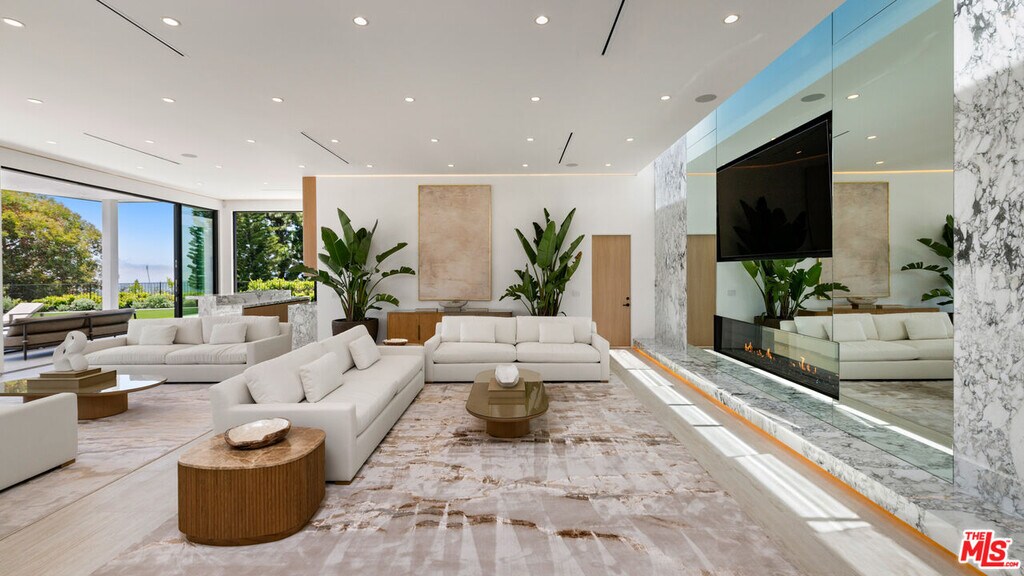 Newly completed and masterfully designed, this exceptional modern estate sits on one of the most coveted streets in Trousdale Estates, offering breathtaking city-light views and the pinnacle of Beverly Hills luxury living. A private gated entry opens to dramatic living spaces with soaring ceilings and walls of glass that flood the home with natural light while framing sweeping skyline vistas. The expansive open floor plan creates seamless indoor-outdoor flow, ideal for both grand entertaining and effortless daily living. At the center of the home, a showpiece chef's kitchen features top-tier appliances, custom cabinetry, and a striking oversized island for gatherings large or small. Outside, a resort-style setting awaits with an infinity-edge pool, multiple lounge areas, and beautifully landscaped grounds designed for privacy and ambiance. The luxurious primary suite offers serene city views, a spa-inspired bath, and a large walk-in closet, while additional highlights include a private screening room, well-appointed guest suites, and fully integrated smart home technology. Offered furnished or unfurnished, this newly completed Trousdale masterpiece delivers an extraordinary blend of privacy, prestige, and contemporary design. MLS# 26663309