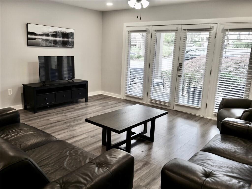 WELCOME HOME TO THIS CHARMING,TERRACE LEVEL END UNIT,nestled in the quiet,GATED COMMMUNITY of The Park at Ashford. The unit is COMPLETELY RENOVATED with LVP FLOORING AND FRESH PAINT THROUGHOUT,UPDATED FIXTURES AND LIGHTING,ELEGANT PENDANT LIGHTING OVER THE EXTENDED QUARTZ ISLAND WITH SEATING FOR FOUR,STAINLESS APPLIANCES,RECESSED CAN LIGHTING,NEW STACKABLE WASHER AND DRYER,NEW BATHROOM VANITY AND SUBWAY TILE IN BATH,AND SO MUCH MORE! Enjoy the pool,outdoor grills,neighborhood pond and dog park. Just next door is BLACKBURN PARK AND THE YMCA. A few miles down is EASY ACCESS TO I-285 and loads of RESTAURANTS AND SHOPPING AT PERIMETER MALL. Close proximity to public and private schools,hospitals,and easy access to PUBLIC TRANSPORTATION all round out this serene place! . Application furnished upon request from listing agent/property management company. Zillow apps accepted. PLEASE REVIEW QUALIFICATIONS BEFORE REQUESTING A TOUR: 605+ CREDIT SCORE,TAKE HOME INCOME 2.5 TIMES THE RENTAL AMOUNT,NO EVICTIONS,CLEAR BACKGROUND CHECK,PROOF OF STEADY INCOME REQUIRED.