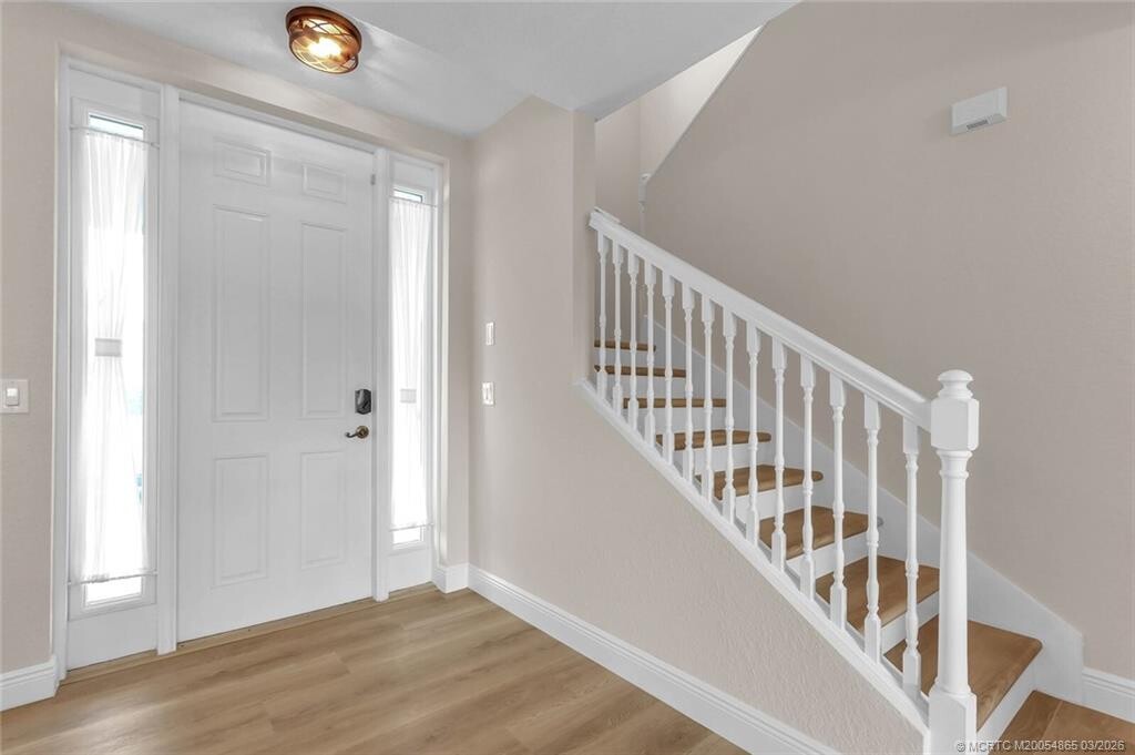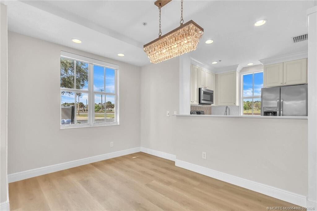 Embrace the coastal lifestyle in this beautifully updated townhome just steps from downtown Jensen Beach. The interior has been freshly painted and features new luxury vinyl flooring,crown molding in the kitchen,a designer backsplash,and an elegant electric fireplace. The open layout offers one bedroom and full bath on the main level,with two ensuite bedrooms upstairs. Enjoy reserved parking,impact windows,and a covered patio with pool views. Walk to vibrant shops,dining,and markets,or cross the Jensen Causeway to the public beach. The Indian River Lagoon is right across the street,offering endless opportunities for outdoor enjoyment. Move-in ready and waiting for you! MLS# M20054865