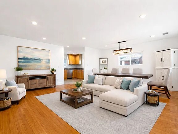 This traditional residence offers a comfortable layout, abundant natural light, and a peaceful suburban setting while remaining close to shopping, dining, and local parks. Inside, the home features a bright open-concept living and dining area that flows seamlessly into the kitchen, creating an inviting space for everyday living and entertaining. The kitchen is equipped with stainless steel appliances including a stove, microwave, dishwasher, and refrigerator along with ample cabinetry, generous counter space, and plenty of storage.