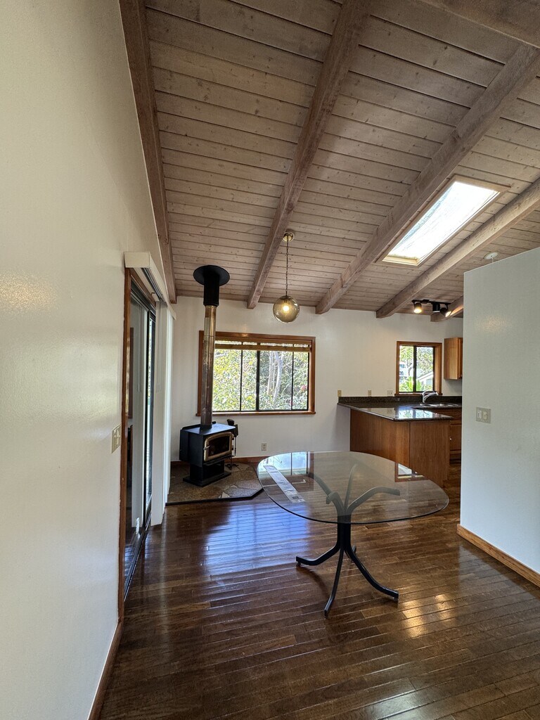 Large covered Lanai, surrounded by large mature trees and fruit trees. 3 bedrooms with 2 baths and an interior laundry room. Open beam living room and kitchen. Located in Makawao Town just behind Baldwin Avenue, with parking for two cars.