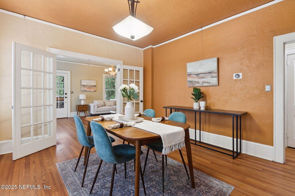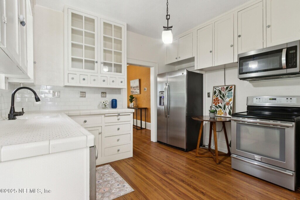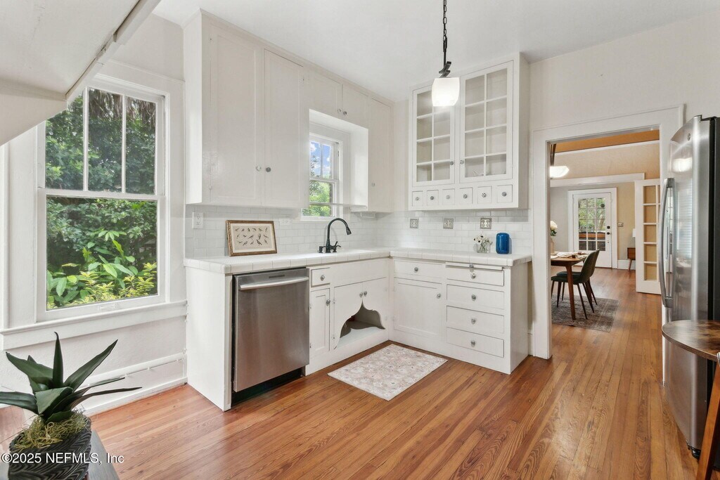 4 Bed / 2 Bath home in Jacksonville's Avondale! This charming 1930 Craftsman features heart pine floors,a welcoming front porch,and a kitchen with hexagonal tile countertops. Two bedrooms on the main floor and two upstairs offer flexible living or work space. Enjoy the rear raised porch overlooking a lush backyard filled with kiwi,fig,lemon,lime,avocado,mulberry,and blueberry trees,plus detached sheds and a whole-house generator. Close to Boone Park tennis courts and walking distance to Avondale's shops,cafés,and restaurants. No HOA,off-street parking,metal roof,and central HVAC complete this inviting home,a perfect mix of historic charm,modern updates,and prime location! MLS# 2115502