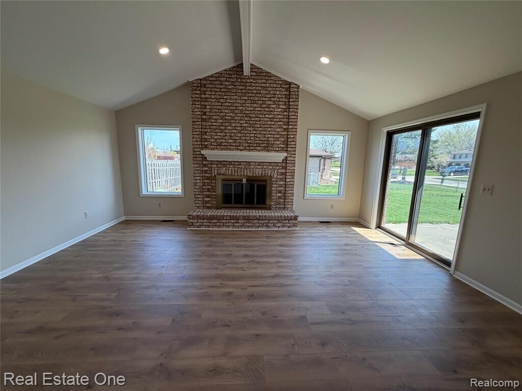 Beautifully professionally remodeled ranch on a corner lot in Sterling Heights featuring 3 bedrooms and 2 full bathrooms with a bright, open layout throughout. The brand new updated kitchen offers modern cabinetry, new countertops, stainless appliances, new flooring, and spacious eat-in dining area, flowing seamlessly into a large family room with a vaulted ceiling and statement brick fireplace. Enjoy abundant natural light from oversized windows and the doorwall leading to a fenced backyard with patio area, perfect for relaxing or entertaining. Additional highlights include updated flooring throughout, attached 2-car garage, full basement for storage, and a functional single-level layout for comfortable everyday living. Located on a desirable corner lot in a quiet neighborhood with convenient access to shopping, dining, and major roadways. Move-in ready and immediate occupancy available.