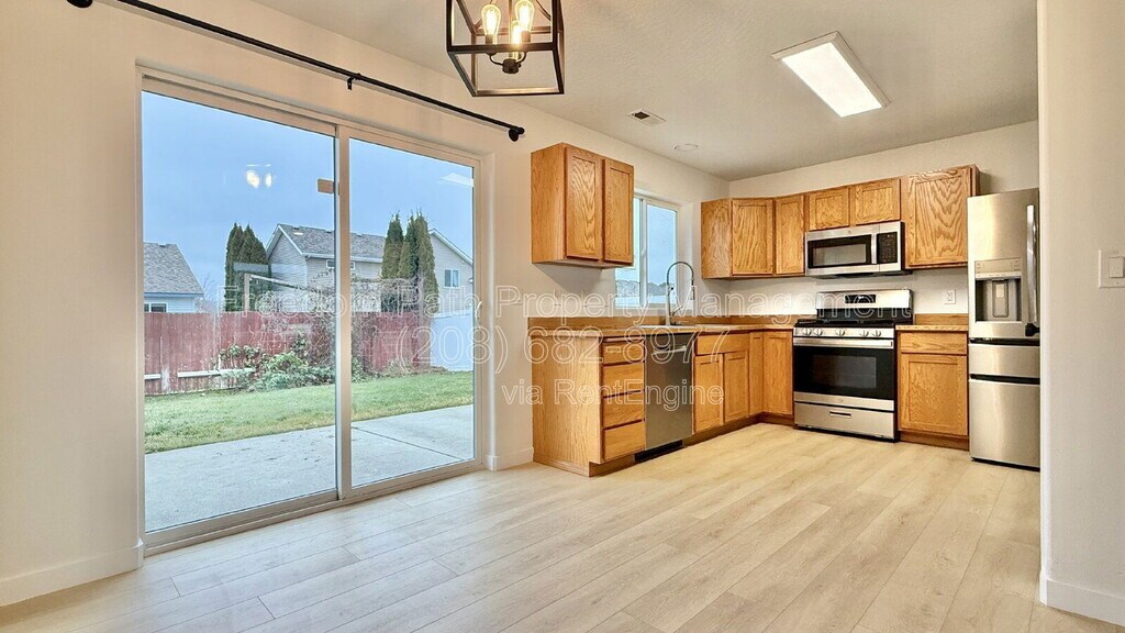Welcome to this beautifully updated 3-bedroom, 2-bath rancher located in the desirable Hawks Nest neighborhood of Coeur d’Alene. This 1,118 sq ft single-level home offers a clean, modern interior paired with a spacious, and landscaped backyard. Ideal for comfortable everyday living. Inside, the home has been recently remodeled with new flooring and fresh paint throughout. The open living area is bright and inviting, featuring recessed lighting, large windows, and durable multi-toned wood laminate flooring that flows seamlessly through the main living spaces. The kitchen offers ample cabinet and counter space, stainless steel appliances, and a functional layout that opens directly to the dining area. Sliding glass doors lead to a private concrete patio, creating an easy transition for indoor/outdoor living. The primary bedroom includes an en-suite bathroom, while the additional bedrooms are well-sized and flexible for guest rooms or a home office. Outside, the home features a fully fenced, level backyard with two fruit trees, raspberry bushes, and a dedicated garden/trellis area. A custom drip irrigation system and rain-sensor sprinkler system are already installed, and landscaping is included, making outdoor maintenance simple and stress-free. The yard also includes a 10x20 concrete patio, offering plenty of space for outdoor seating or entertaining. Additional exterior features include a two-car attached garage, wide driveway, RV parking, and a clean, well-maintained front entry that complements the quiet neighborhood setting. Property Highlights 3 Bedrooms | 2 Bathrooms 1,118 Sq Ft | Single-Level Living Recently remodeled with new floors and paint Central A/C Stainless steel appliances Sliding doors to backyard patio Fully fenced yard with fruit trees & raspberries Landscaping included Two-car garage Small dogs considered Water / Sewer / Trash: $100 per month (additional) Listing information is believed to be accurate but is not guaranteed. Details may come from owner disclosures, public records, or previous listings, and landscaping, appliances, or interior/exterior features may have changed since photos were taken. Availability, price, and terms may change without notice. Applicants are encouraged to verify all information. By submitting your information on this page you consent to being contacted by the Property Manager and RentEngine via SMS, phone, or email.
