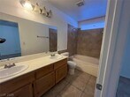 Single-story home located off Durango & Gowan in the Northwest Las Vegas area near Lone Mountain. Situated on a cul-de-sac, this 2 bedroom, 2 full bath home offers a functional layout and comfortable living space. Interior features include tile flooring throughout, gas fireplace, 2-inch faux wood blinds, updated light fixtures, and ceiling fans in all rooms. Kitchen includes gas stove, stainless steel refrigerator, dishwasher, and eat-in area. Washer and gas dryer included. Primary bedroom features walk-in closet and en-suite bath with double sinks and Roman tub with tile surround. Secondary bedroom includes spacious closet. Attached 2-car garage. Low-maintenance backyard with concrete patio and covered area. Convenient access to shopping, dining, parks, YMCA, casinos, and US-95 freeway. Located near Lone Mountain recreational areas and neighborhood amenities.