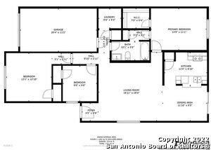 This cozy 3 bedroom 1 bath home features a spacious living/dining combo area, a convenient breakfast bar in the kitchen, and a utility room inside for added convenience. Stay comfortable year-round with ceiling fans throughout the home. Feel secure with pre-wired security features in place. Park your car in the one car garage and enjoy the privacy of your own patio. The split master layout offers added privacy and functionality. Don't miss out on this move-in ready home in a great location!