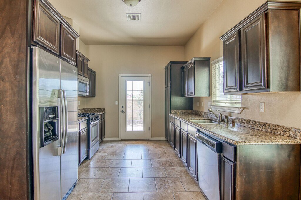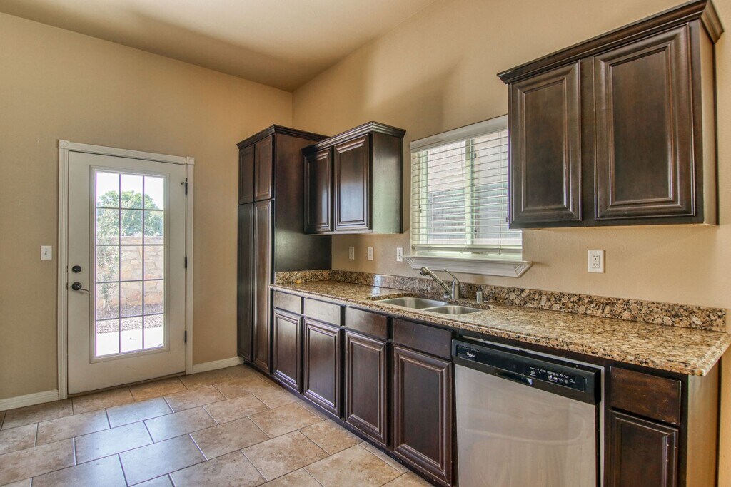 Beautiful 3 bedrooms 2 baths house with a kitchen with All stainless steel appliances including, dishwasher, refrigerator, microwave hood, stove and garbage disposal. Double door laundry section is open to the home with washer and dryer hookups and additional cabinet space. The carpeted master bedroom has a walk-in closet, ceiling fan and private master bathroom. Master bathroom has a dark wood vanity with double sinks and an exquisite tiled walk-in shower. Elegant bronzed fixtures throughout give this home a luxurious feel. Refrigerated air and double car garage. Located off Montana and close to Fort Bliss and 375 loop and Providence Hospital, this gated community has a clubhouse with pool, tennis & basketball courts & playground & Gym in club house. Please note that water bill is included in the rent. Minimum of 12 month lease or more ... $250 dlls each pet deposit (max 2) Non- refundable Application fee $50 each 18 years and older. Verify the schools. WATER INCLUDED This listing is submitted subject to errors, omissions or changes with out notice.