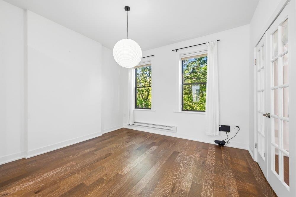 This is currently the best 1-BR/1-BA rental deal in Downtown Jersey City. Tucked away in a beautiful walk-up brownstone within the vibrant Village neighborhood, this condo was gut-renovated in 2023 and offers exceptional value with high-end modern finishes, including the convenience of an in-unit washer and dryer. The thoughtful layout and abundant storage make the home feel much larger than its deeded square footage suggests. The bedroom features a generous walk-in closet, and the dedicated laundry room provides extensive extra storage space to keep everything organized. Cats only - non refundable pet fee may apply. The sun-filled living and dining area features elegant hardwood floors that have been meticulously maintained. Unlike many historic brownstones, the flooring here is perfectly level and remains remarkably quiet, with no tilting or creaking noise while walking. The spacious kitchen is equipped with sleek quartz counters, further complementing the modern renovation. As a top-floor residence, you will enjoy total privacy with no neighbors living above you. The home’s position allows for exceptional airflow with multiple windows facing both south and north, inviting a refreshing breeze through every room. Just outside, a beautiful pear tree provides a picturesque view, offering fragrant blossoms in the spring and natural shade to temper the summer heat. Located on a quiet, tree-lined street, this home is just a 10-minute walk to the Grove Street PATH Station and 24-hour transportation to New York City. You are in the heart of a neighborhood renowned for fine dining, boutique shopping, and art galleries. This residence is cat-friendly, though a non-refundable pet fee may apply. The unit is available at a special rate of $2,800 for move-ins prior to May 20th; otherwise, the rent is $2,950. Additionally, there are no condo move-in or move-out fees required for this unit—a remarkable saving.