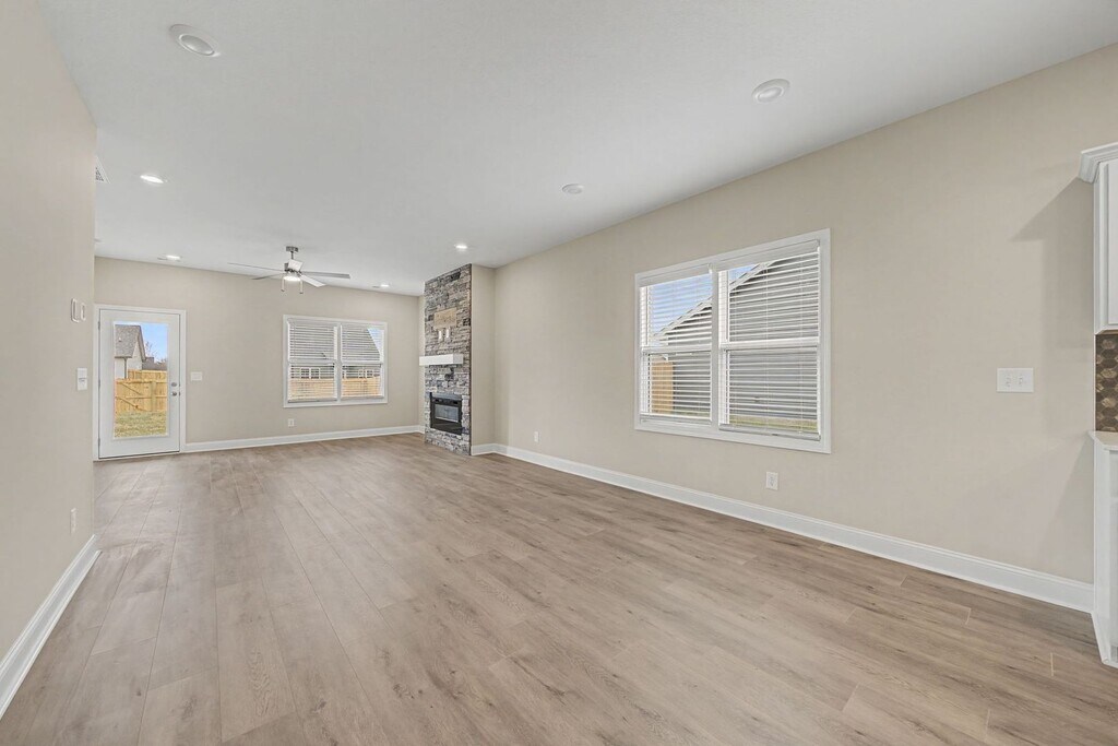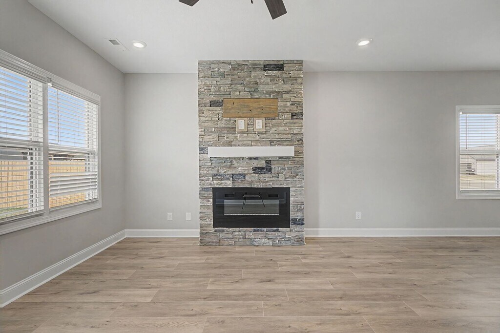 $500 off first month's rent! This stunning brand new construction home offers 3 spacious bedrooms and 2.5 well-appointed bathrooms, including a main level owner suite with a luxurious tile shower. The open concept design is perfect for modern living, with a sleek, modern kitchen at its heart. Here, you'll find stainless steel appliances, pendant lighting, a pantry, and beautiful granite countertops. The living area is enhanced by a cozy fireplace, adding a touch of warmth and elegance. Step outside to a covered patio overlooking a fenced-in yard, offering a private outdoor space for relaxation or entertaining. The home also features a convenient two-car garage. With so many more amenities to discover, 366 Galway Dr has it all! Sorry, no pets allowed.