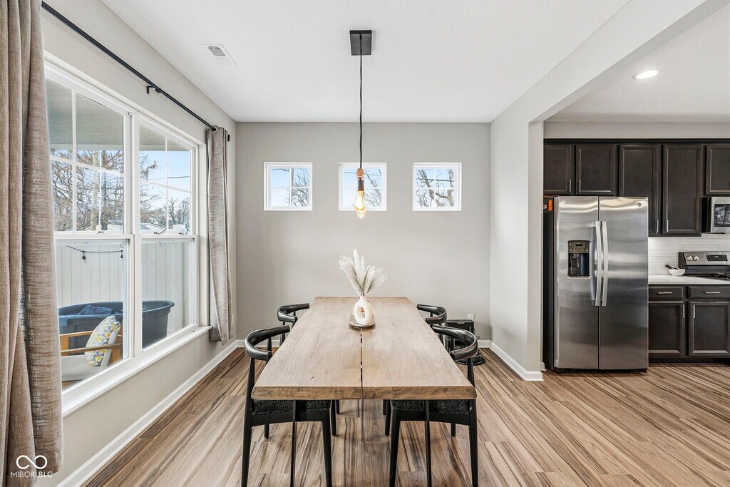 Welcome to 366 Steeples Blvd,a beautifully designed 3-bedroom,2.5-bath home located in The Overlook at Central State,one of Indianapolis' most desirable and well-connected communities. Thoughtfully built with modern finishes and a functional layout,this home offers style,comfort,and convenience just minutes from downtown. The main level features a bright open-concept floor plan with luxury vinyl plank flooring and an effortless flow between the living,dining,and kitchen spaces. The kitchen is a standout,featuring quartz countertops,backsplash throughout,stainless steel appliances,a large center island,ample cabinetry,a pantry,and a dedicated coffee bar area-perfect for both everyday routines and entertaining. Upstairs,the primary suite provides a private retreat with a spacious walk-in closet and an ensuite bathroom featuring dual vanities and a modern shower. Two additional bedrooms offer flexibility for guests or a home office. The guest bathroom also features dual vanities,adding convenience rarely found in homes of this size. A convenient upstairs laundry room completes the upper level. Outside,enjoy a large,fully fenced backyard with a PVC privacy fence,ideal for relaxing,entertaining,or creating your own outdoor retreat. A detached two-car garage adds functionality and privacy. Residents of The Overlook enjoy a walkable neighborhood with access to green space,recreational fields,and a neighborhood coffee shop,all while being just minutes from downtown Indianapolis,major highways,shopping,dining,and the airport. This home delivers modern design,thoughtful upgrades,and a prime location-schedule your private showing today and experience Central State living at its best. **Also listed for rent at $2,600/mo** Based on information submitted to the MLS GRID as of [see last changed date above]. All data is obtained from various sources and may not have been verified by broker or MLS GRID. Supplied Open House Information is subject to change without notice. All information should be independently reviewed and verified for accuracy. Properties may or may not be listed by the office/agent presenting the information. Some IDX listings have been excluded from this website. Prices displayed on all Sold listings are the Last Known Listing Price and may not be the actual selling price.