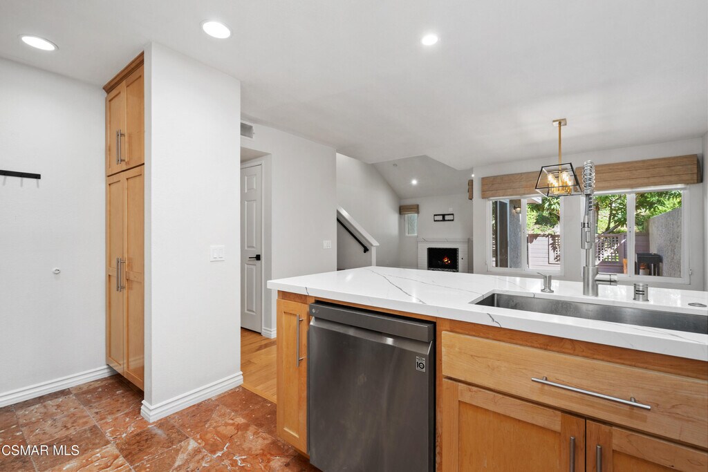 Surrounded by tree-lined streets and scenic mountain views, this inviting residence offers a serene retreat with a spacious private patio with BBQ--ideal for relaxing or entertaining. Discover the perfect blend of luxury and lifestyle in this beautifully remodeled 3-bedroom, 2.5-bathroom home located in the highly desirable Hidden Canyon community of Westlake Village. Inside, soaring ceilings and rich wood flooring create a warm and modern ambiance in the living room, complemented by a sleek fireplace. The updated kitchen features stainless steel appliances, custom cabinetry, a breakfast bar with generous seating, and a large dining area, all with direct access to the attached two-car garage. Each bathroom has been thoughtfully renovated to combine style and functionality. Hidden Canyon residents enjoy access to three sparkling pools, six soothing spas, a playground, lush greenbelts, and nearby hiking and biking trails. Families will appreciate proximity to top-rated schools like Westlake High and Oaks Christian, while the nearby YMCA offers activities for all ages. Just minutes from premier shopping and dining, this home delivers the best of Westlake Village living in a vibrant, amenity-rich neighborhood.