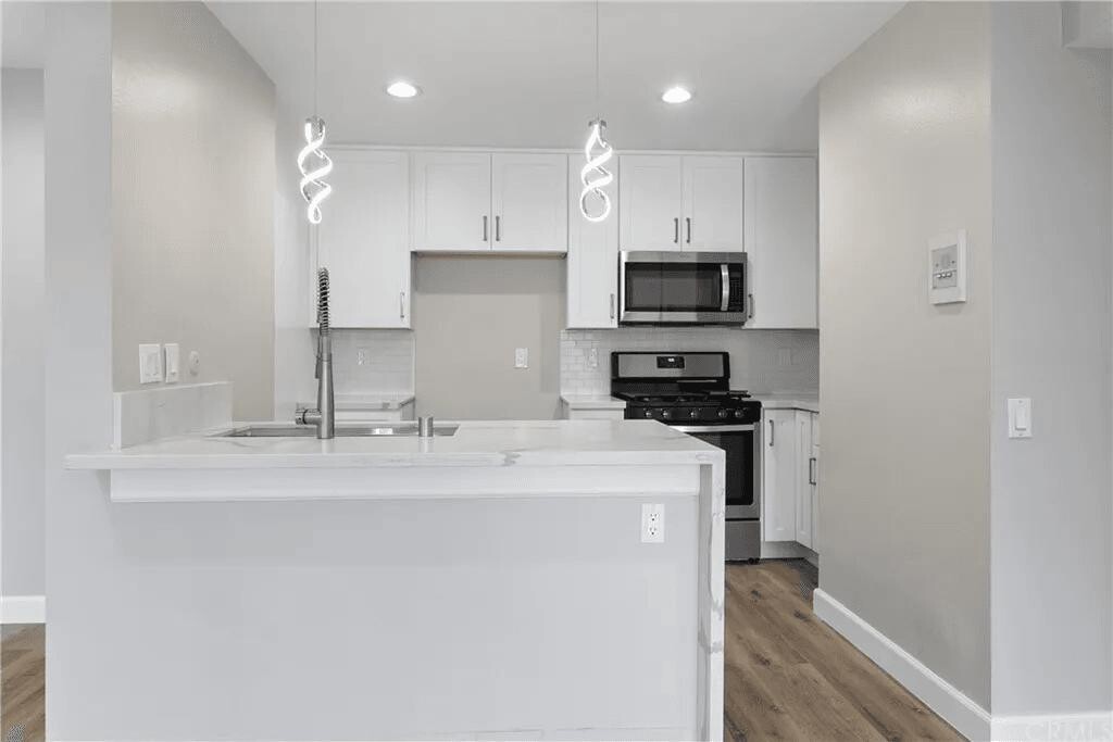 This stunning luxury, recently remodeled 1 bedroom penthouse condo at highly sought after St Albans private community. Just a hop away from South Coast Plaza, OCMA, parks and the 55, 405 and 73 fwy. You can't find another home with these many positives at this price. A favorite among buyers today, 2 bd in the heart of the OC, fully renovated, with pool, park like settings, gym, tennis court, and in unit washer/dryer. Walk into this modern penthouse, and be amaze at the open floor plan, stainless steel appliances, luxurious flooring, countertops and fireplace. The kitchen features a large walk in pantry, smooth close drawers, premium quartz counter tops, and large stainless steel faucet and sink. The bathroom is fully remodeled, contains a double sink vanity, premium flooring, and washer and dryer(a rare find). Relax in your home or partake in the private community's many amenities: clubhouse, gym, pool, hot tub, tennis court, park like settings, and its own private lake