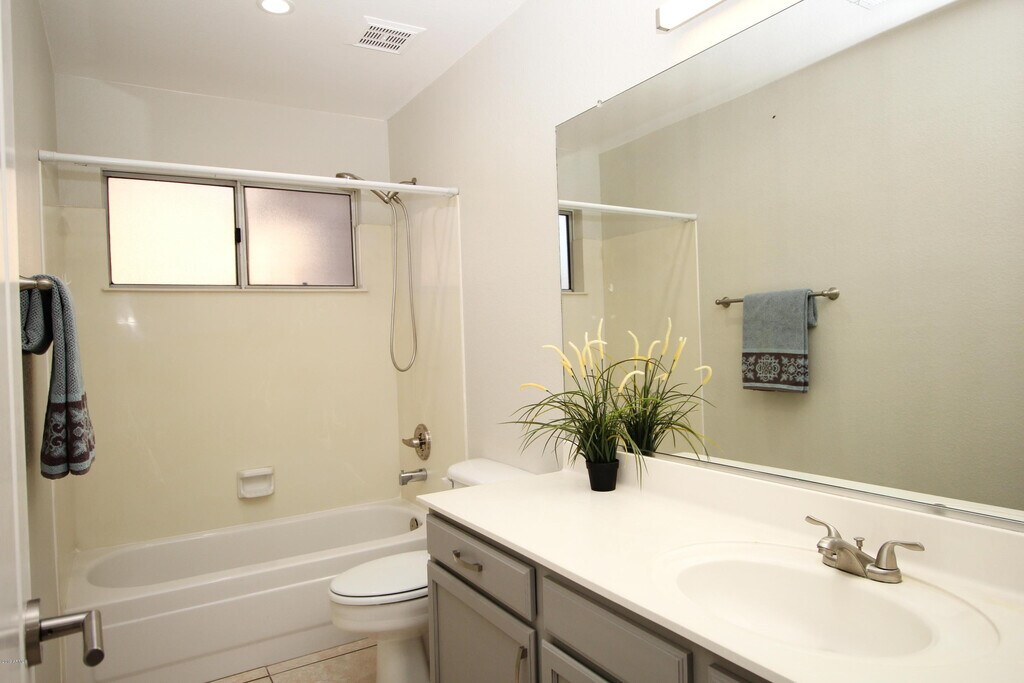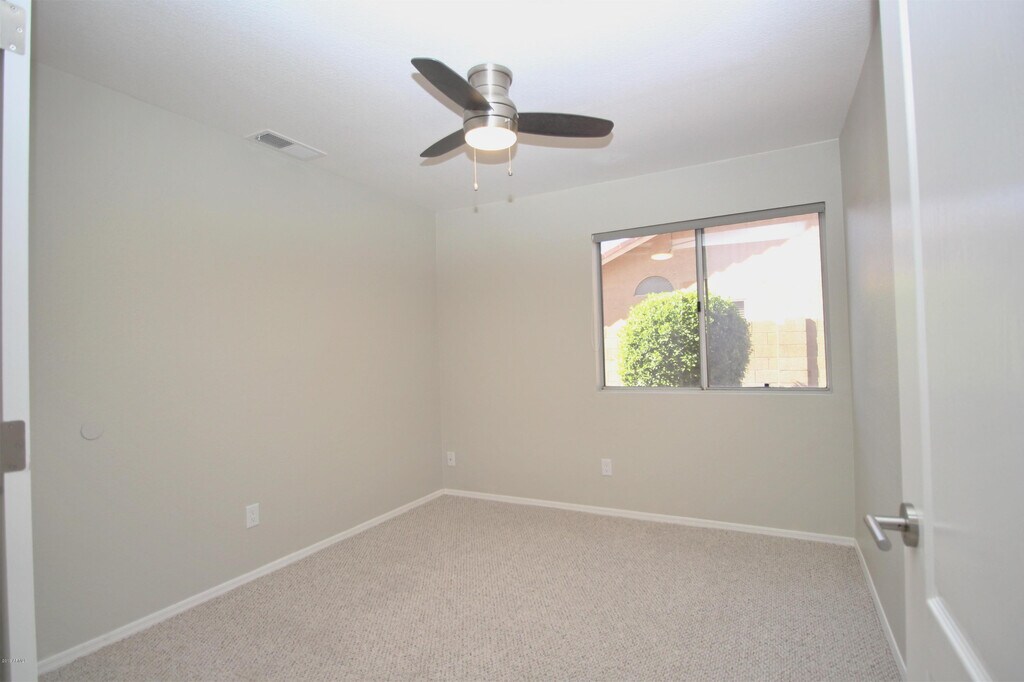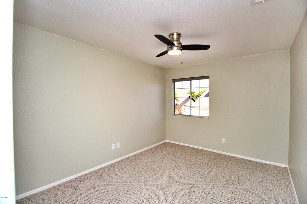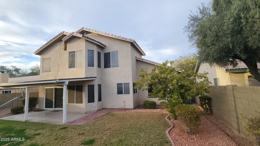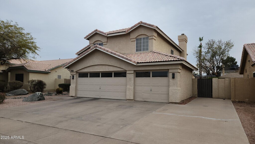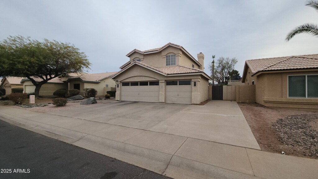 This stunning 4-bedroom,3-bath home with a 3-car garage is perfectly situated less than 2 miles from Chandler Fashion Center,offering convenient access to top-tier shopping,dining,entertainment,and the Loop 101 & 202 freeways. Nestled near the Technology Corridor,this home is ideal for those seeking both comfort and convenience. Step inside to an inviting formal living and dining area with vaulted ceilings,creating a bright and open atmosphere. The updated kitchen boasts sleek quartz countertops,a spacious island,stainless steel appliances,and a pantry,making it perfect for entertaining. A bedroom/office with French doors and a full bath completes the downstairs. The large primary suite features a cozy sitting area overlooking the backyard with dual vanities,a garden tub,and a spacious walk-in closet. Two additional upstairs bedrooms also feature walk-in closets for ample storage. Enjoy Arizona's beautiful weather in your extended covered patio,perfect for outdoor relaxation. The grassy backyard,mature trees,and children's play area complete this charming oasis.