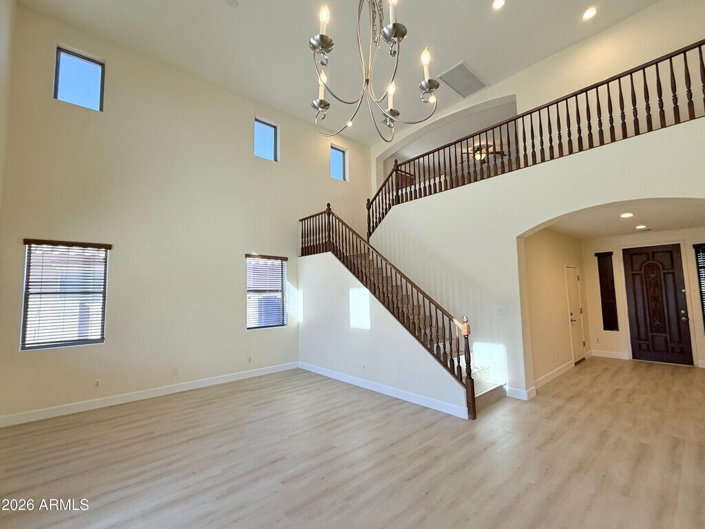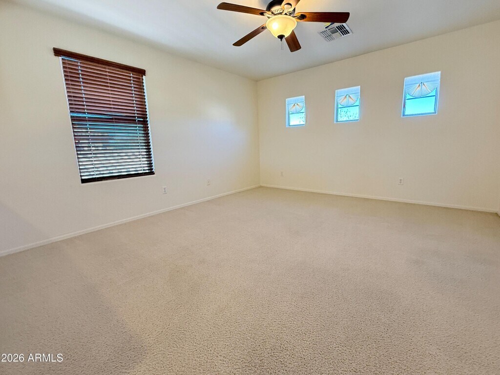 No Application Fees! Spacious 4 bedroom,3 bathroom Chandler home located in The Meadows at Eagle Glen offering over 3,100 square feet of well designed living space. This home features a large formal living room,a separate family room with soaring 20 foot ceilings,an oversized upstairs loft,and a dedicated workspace with a built-in desk. The open kitchen includes tile flooring,granite countertops,a large island with breakfast bar,upgraded cabinetry,pantry,gas range,dishwasher,and refrigerator. One bedroom and one full bathroom are conveniently located on the first floor. The expansive primary suite offers a private balcony,dual walk-in closets,double sink vanity,garden tub,and a newly remodeled step-in shower. The laundry room includes a utility sink along with a washing machine and dryer. The professionally landscaped backyard is ideal for entertaining with an extended covered patio,large grass lawn,separate seating area,and built-in fire pit. A split three car garage with separate two car and single car bays provides excellent parking and storage flexibility. The Meadows at Eagle Glen is a well established Chandler community surrounded by neighborhood parks,walking paths,and highly regarded local schools. The home is ideally located near shopping,dining,and entertainment at Chandler Fashion Center,Crossroads Towne Center,and San Tan Village. Convenient access to Loop 202 and Loop 101 allows for easy commuting throughout the East Valley while maintaining a quiet residential setting. All Denali Real Estate residents are automatically enrolled in the Resident Benefits Package (RBP) for $55.00/month which includes Renter's Liability Insurance,Credit Building to help boost the resident's credit scores with timely rent payments,up to $1M Identity Theft Protection,HVAC air filter delivery (for applicable properties),our best-in-class resident rewards program,and much more!
