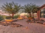 Fabulous Toll Bcrothers residence in gated N Scottsdale community of Treviso on a 1-acre lot. A gorgeous gated entrance to a large courtyard welcomes your guests. This meticulously maintained home has a super functional floor plan with large spacious rooms and en suite bedrooms and offices. The kitchen boasts a large kitchen island,stainless steel appliances,a built-in refrigerator,and 5 burner gas range,a water filter system,and a walk-in pantry. Standouts include 12+ ceilings,a wet bar,a private backyard,18-inch tile flooring,flex room off 2 of the bedrooms,and guest Casita with 1 bedroom. The Master bath has a Roman tub,expensive shower with two entrances,his & her vanities,and two walk-in closets off the master suite is a separate patio with a beautiful water feature. The backyard has several different sitting areas- one with a fireplace and another with an elevated fire pit and bench. Plantation shutters throughput. Epoxy garage floors. Community features include tennis courts & children's playground. The community is located off the north end of brown ranch recreational area. Don't miss this one!