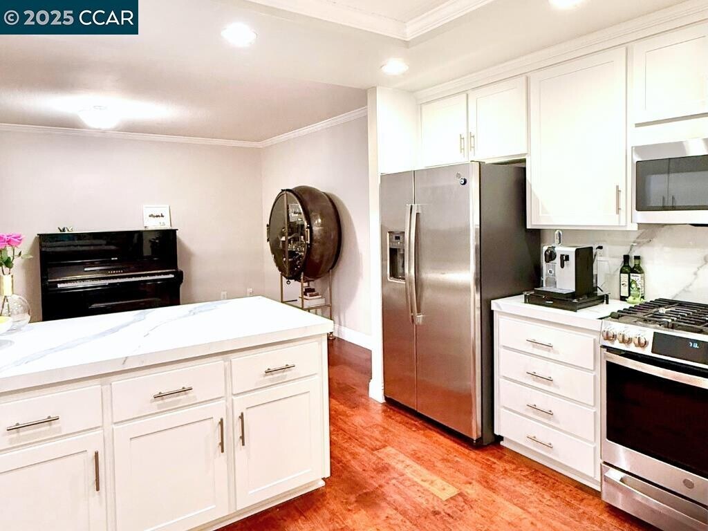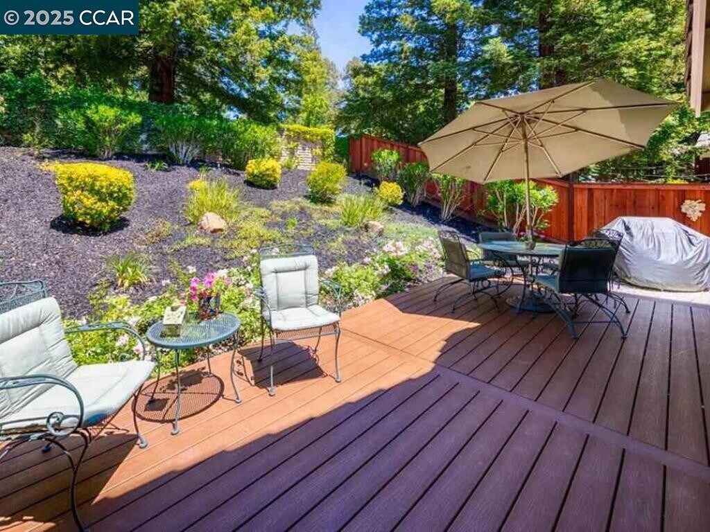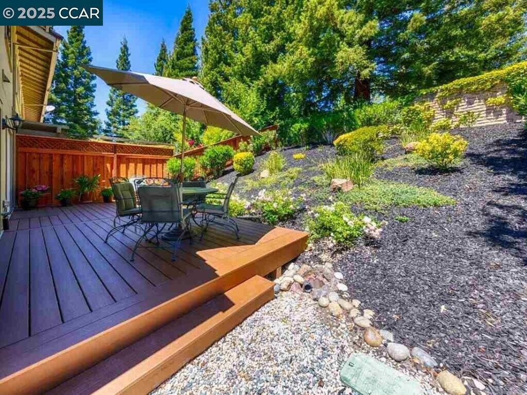 Beautifully upgraded END-UNIT townhouse in the desirable gated Silver Oak community at Blackhawk Country Club,combining modern style,comfort,and convenience in one of the East Bay’s most sought-after neighborhoods with top-rated schools. This spacious 1,869 sq.ft. home features 3 bedrooms and 2.5 updated baths,vaulted ceilings,a cozy fireplace,and cherry wood floors on the main level. The updated modern white cabinet kitchen with stainless steel appliances offers a very convenient layout,while dual French doors lead to a brand-new Trex deck patio perfect for indoor/outdoor living. Upstairs,the primary suite includes a walk-in closet and upgraded bath,with two additional bedrooms sharing an updated Jack & Jill bathroom. Additional highlights include elegant plantation shutters,recessed lighting,central AC and heating,an attached 2-car garage with full-size driveway,and a community swimming pool. The home also offers a spacious private backyard,perfect for entertaining and relaxing with privacy. Minutes to Blackhawk Plaza for dining,shopping,and entertainment,and close to golf,parks,and trails,this stunning home is move-in ready and ideal for those seeking a modern lifestyle in a safe,family-friendly community. DOGS and CATS allowed! Water is included in rent.