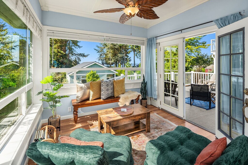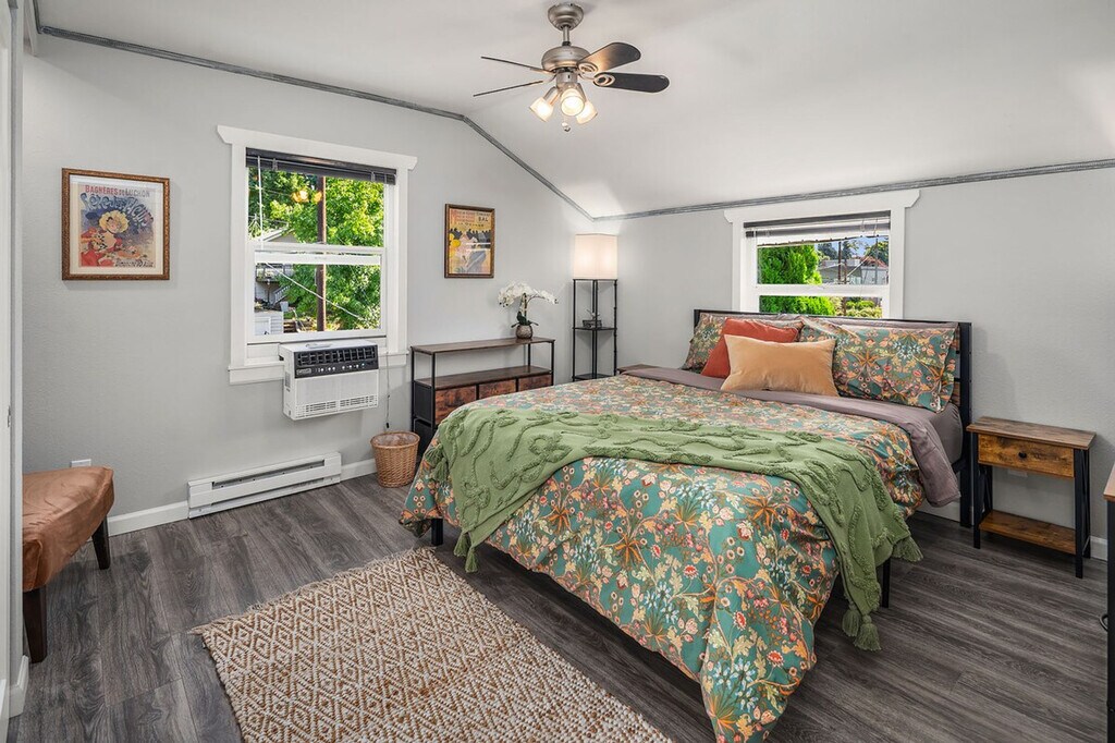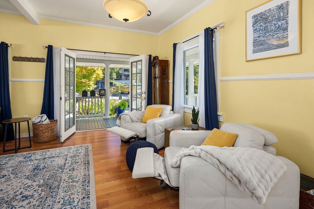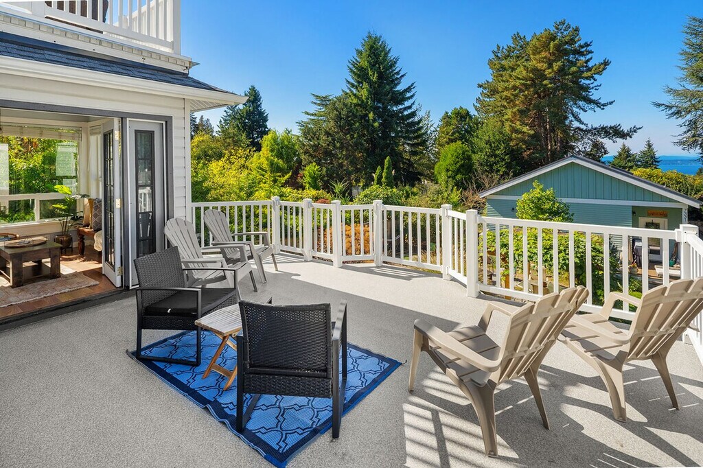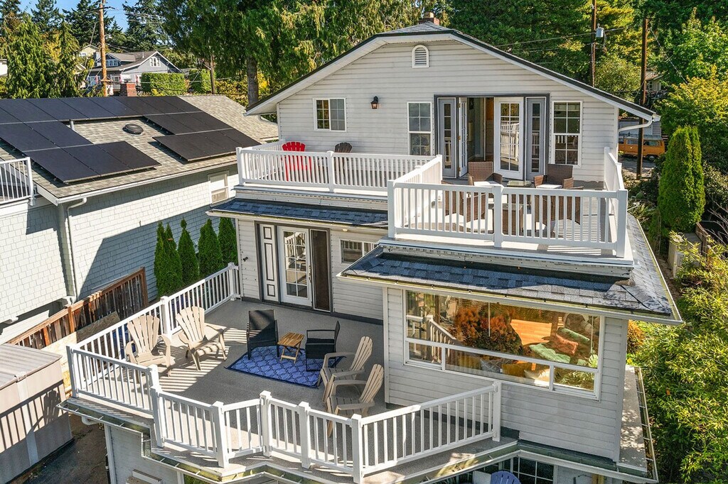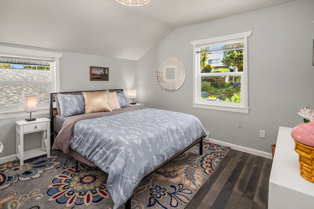 Feel at home in this roomy, sun-filled residence in the residential Gatewood area, just minutes from Lincoln Park, the ferry dock, and Westwood Village. Enjoy breathtaking views of Puget Sound and the Olympic Mountains from two expansive decks and a comfortable front porch. The king bedroom is filled with natural light and features a walk-in closet and private deck. The home is equipped with portable and window ACs, high-speed internet, and dedicated work areas. A dedicated driveway offers convenient off-street parking. This spacious and sunlit home in West Seattle offers peace and quiet while being walkable to cafes, parks, and restaurants. Close to California Ave, it provides easy access to downtown West Seattle and the Fauntleroy Ferry. Ideal for families or groups of friends, the home features a large front porch and yard, a spacious living room, a chef's kitchen, dedicated workspaces, private decks with stunning views, a flex room that converts to a fourth bedroom, and driveway parking. The charming Craftsman design adds to the appeal. The property includes free driveway parking and free street parking, providing ample space for vehicles. Located in a quiet, safe, and private residential neighborhood, this home is just 3 minutes from Thriftway, 4 minutes from Lincoln Park, and 6 minutes from Westwood Village. The property offers two decks with gorgeous views of the mountains over Puget Sound, making it a perfect spot to relax and enjoy the scenery. The home is yours to enjoy, with full access to the large, primary upper unit, including the front yard, private decks, and driveway parking. Access is secured by an electronic lock with a smart keypad on the front door. The stairs to the second floor are steeper and narrower than usual, so extra caution is advised. Children should not be allowed on the decks unsupervised, and deck doors should remain locked when children are sleeping in the flex room or master bedroom. The backyard is not part of the rental, and there is a private 2-bedroom unit downstairs that is not currently rented. A second, smaller home on the property is a private residence and not associated with this rental. Only the front half of the property is available for use. The home is equipped with high-speed Wi-Fi and dedicated work areas, including a sit-stand desk with a chair and an antique drop-down secretary desk, making it remote work-friendly. A laptop computer is not included. Registration Number: STR-OPLI-25-004925