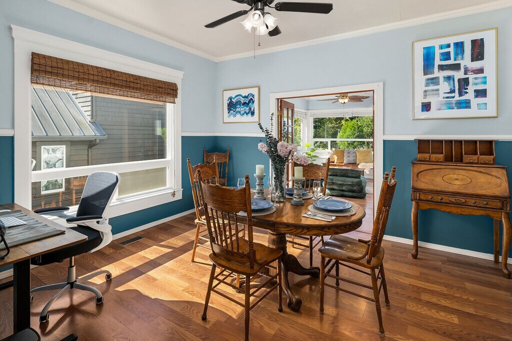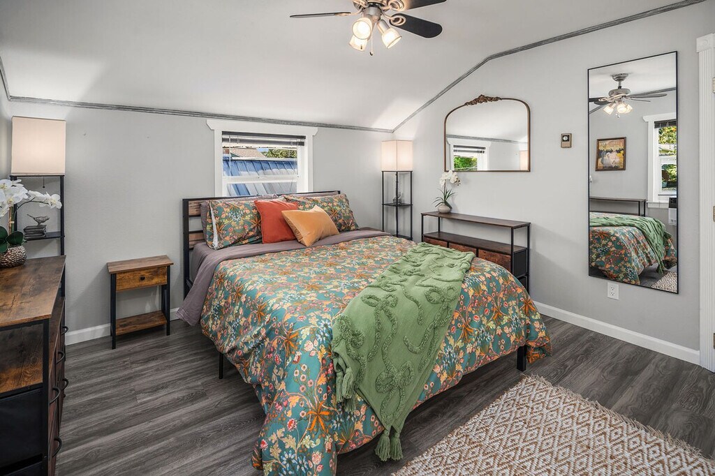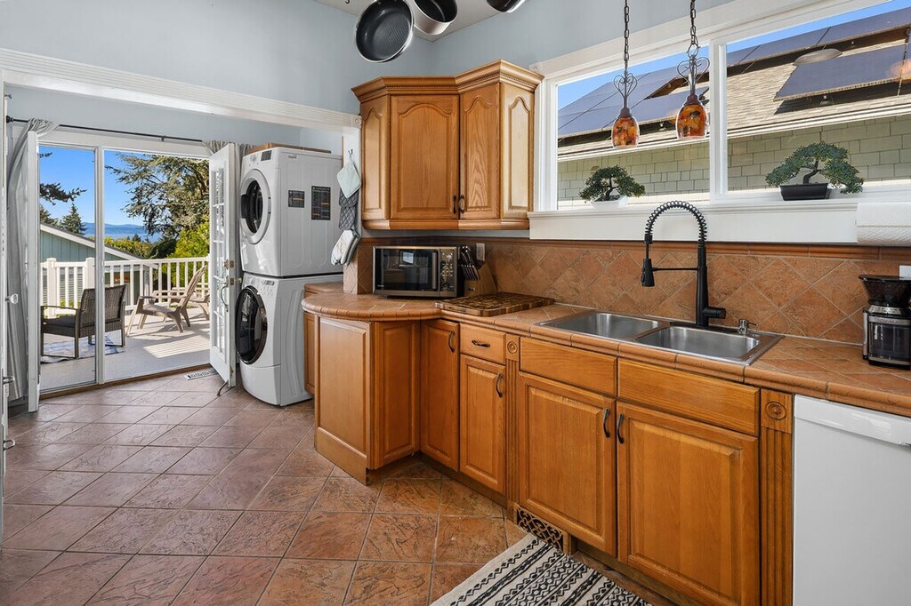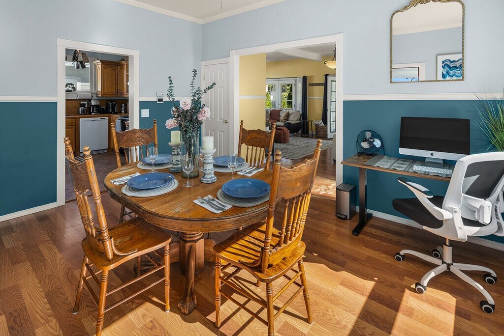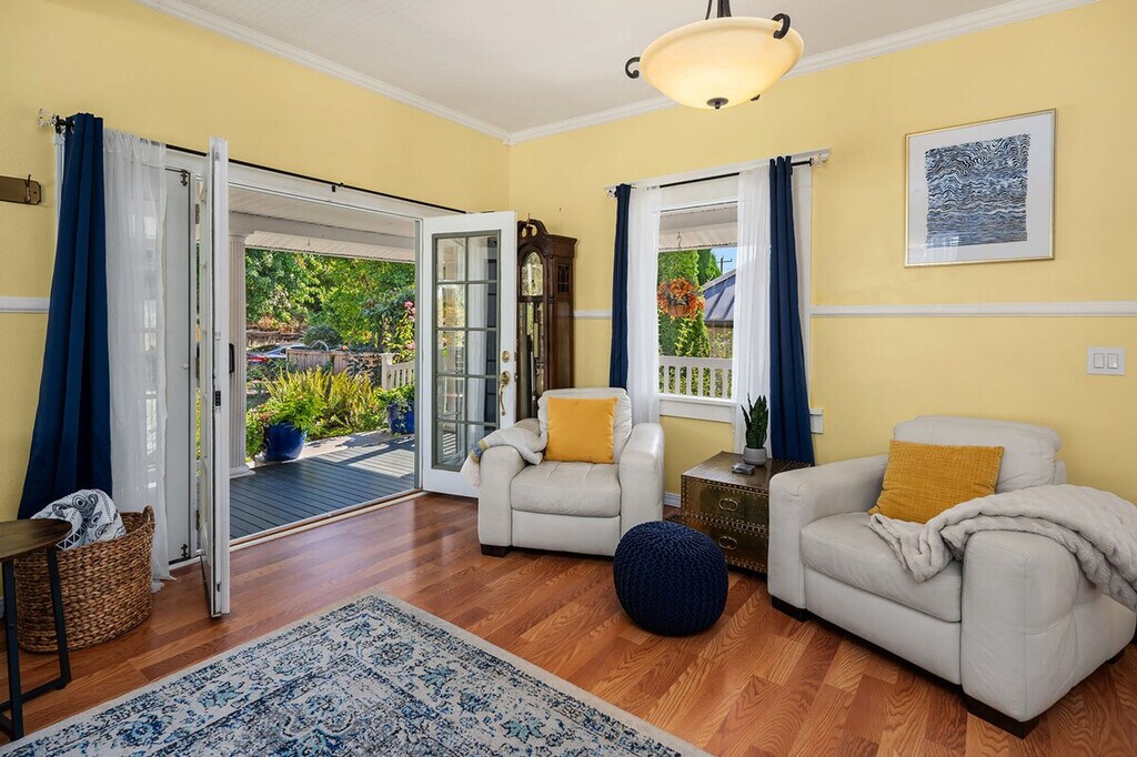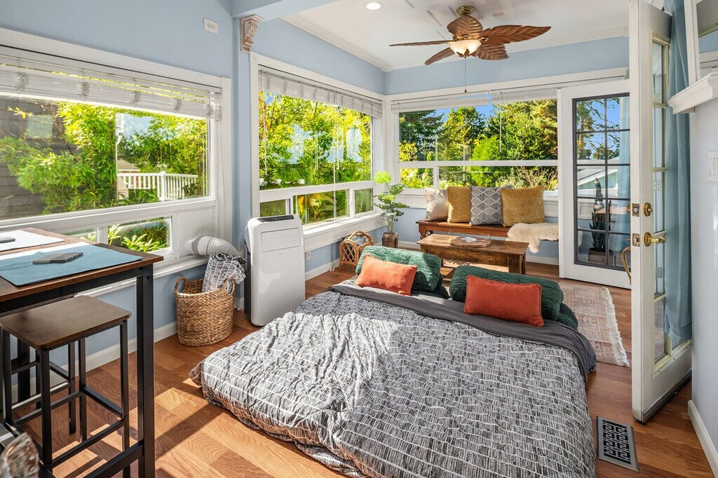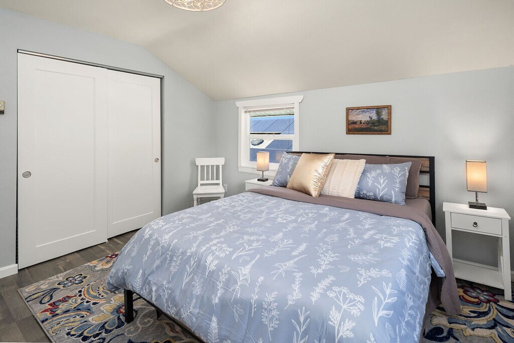 Feel at home in this roomy, sun-filled residence in the residential Gatewood area, just minutes from Lincoln Park, the ferry dock, and Westwood Village. Enjoy breathtaking views of Puget Sound and the Olympic Mountains from two expansive decks and a comfortable front porch. The king bedroom is filled with natural light and features a walk-in closet and private deck. The home is equipped with portable and window ACs, high-speed internet, and dedicated work areas. A dedicated driveway offers convenient off-street parking. This spacious and sunlit home in West Seattle offers peace and quiet while being walkable to cafes, parks, and restaurants. Close to California Ave, it provides easy access to downtown West Seattle and the Fauntleroy Ferry. Ideal for families or groups of friends, the home features a large front porch and yard, a spacious living room, a chef's kitchen, dedicated workspaces, private decks with stunning views, a flex room that converts to a fourth bedroom, and driveway parking. The charming Craftsman design adds to the appeal. The property includes free driveway parking and free street parking, providing ample space for vehicles. Located in a quiet, safe, and private residential neighborhood, this home is just 3 minutes from Thriftway, 4 minutes from Lincoln Park, and 6 minutes from Westwood Village. The property offers two decks with gorgeous views of the mountains over Puget Sound, making it a perfect spot to relax and enjoy the scenery. The home is yours to enjoy, with full access to the large, primary upper unit, including the front yard, private decks, and driveway parking. Access is secured by an electronic lock with a smart keypad on the front door. The stairs to the second floor are steeper and narrower than usual, so extra caution is advised. Children should not be allowed on the decks unsupervised, and deck doors should remain locked when children are sleeping in the flex room or master bedroom. The backyard is not part of the rental, and there is a private 2-bedroom unit downstairs that is not currently rented. A second, smaller home on the property is a private residence and not associated with this rental. Only the front half of the property is available for use. The home is equipped with high-speed Wi-Fi and dedicated work areas, including a sit-stand desk with a chair and an antique drop-down secretary desk, making it remote work-friendly. A laptop computer is not included. Registration Number: STR-OPLI-25-004925