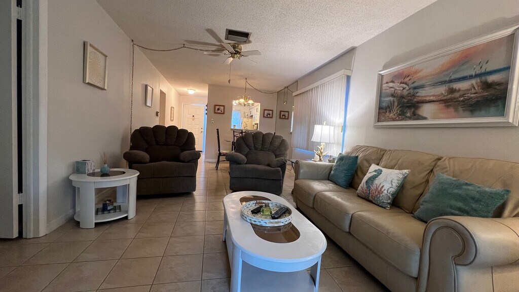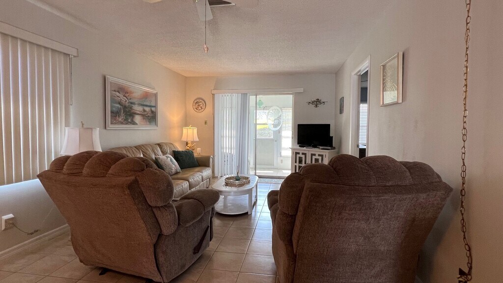 OFF SEASON FURNISHED VILLA!! Come enjoy the Florida weather this SUMMER (May through November) in this immaculate, FULLY FURNISHED 2 bed, 2 bath, 1 car carport villa ON the Golf Course in Seven Spring Golf & Country Club, a wonderful gated community! This END unit has great views of the golf course from every window and has an enclosed Florida room to enjoy it all from. There is also a lovely open patio out back, perfect for grilling on the gas grill! Fully furnished with linens, towels, dishes, cookware, and everything you will need for a carefree vacation! This unit has a KING sized bed in the master and shower in master bath. The guest bath has the full tub and shower set up at the front of the unit with (new in 2024) Queen bed in the 2nd bedroom. The kitchen has refrigerator, range, built in microwave, dishwasher, disposal and a pass through to the dining area so you don't feel trapped in the kitchen while everyone else is having fun in the other room! The villa is light, bright and spotlessly clean with tile floors throughout! You'll be able to relax in the comfortable living room while you watch the sun set over the golf course every evening, unless you are out there swinging a club! Located in the Seven Springs Golf and Country Club, this community is sought after and for good reason! There is a laundromat on site and a community pool just minutes away, as well as the great golf course and clubhouse! The rent INCLUDES the water, sewer, trash, first $100/mo of electric (tenant responsibility for over $100/mo) cable, internet and community services! Fully refundable Security deposit of $500, community application fee of $150, 1st time tenant application fee of $40/person but the application fee for returning tenants is waived. Don't forget the 12% tourist tax and there is a $200 cleaning fee. All funds must be received prior to arrival. We take care of registering you with the HOA and once you get past the front gate, you are free to enjoy your stay without having a thing to worry about except how you are going to fit all the fun into your limited time here! Busch Gardens is an hour away, so are some of the nation's best beaches, Orlando with all the attractions is approx. 2 hours away. You won't want to miss Tarpon Springs either! That is just a short drive away and there is so much to do there! Go out on a sunset cruise or a dolphin cruise, rent a boat for the day or jet ski! Experience the great Greek food and shopping. So don't wait, call today! (This unit rents for $2,300/mo December - April)