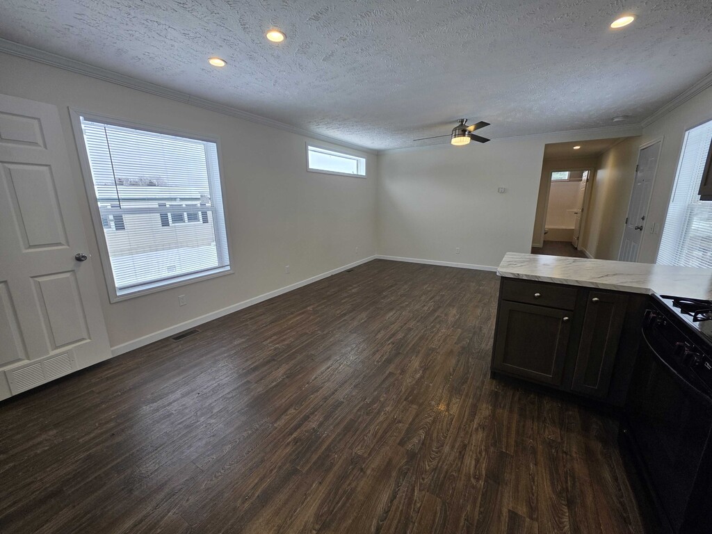 This beautiful 3-bedroom, 2-bathroom home. This residence features an open floor plan with a dining area, offering over 1,056 square feet of living space. The kitchen overlooks the spacious living room and includes ample cupboard space. The refrigerator, stove, and dishwasher are included. The primary bedroom boasts a large walk-in closet and a private bathroom with a walk-in shower. Additional amenities include central air conditioning, an outdoor shed, and off-street parking.