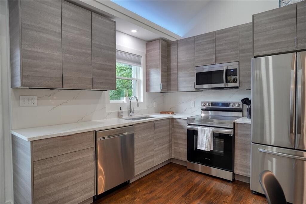 Amazing coveted location,this Old Fourth Ward Atlanta Blue Door Beltline Bungalow is like new! This is a totally renovated Beltline Gem with a top-to-bottom makeover. The open concept includes all new everything,added vaulted ceiling with ledge lighting & additional windows for lots of natural light,2 bedrooms & a full bathroom located off the hallway for access to everyone! Walk to the Eastside Beltline (Atlanta's "Beach Front" property) in just 4 minutes. The location is unbeatable being minutes to Ponce City Market,Krog Market,Inman Quarter,Old Fourth Ward parks,more restaurants than you can count,breweries,shopping,a short drive to the Atlanta Airport,Midtown,Downtown,etc. For a break from all of the walking/biking/entertainment that the area has to offer,this bungalow has a huge level yard,relaxing patio with vintage string lighting and spacious covered front porch. Off-street parking with room for a least 2 cars in the driveway,as well as street parking on one of the best streets in the Old Fourth Ward. FULLY FURNISHED WITH EVERYTHING YOU WOULD NEED & INCLUDES UTILITIES,INTERNET & YARD MAINTENANCE - FLEXIBLE LEASE TERMS. We love working with the MOVIE INDUSTRY as well. Sleeper sofa for additional guests! Owner lives in the area and can handle any needs that should arise in a very timely manner. Ring flood light with camera and custom keyless entry for your security. Flexible lease terms! Don't miss the virtual tour and drone footage at . Confirm availability prior to showing.
