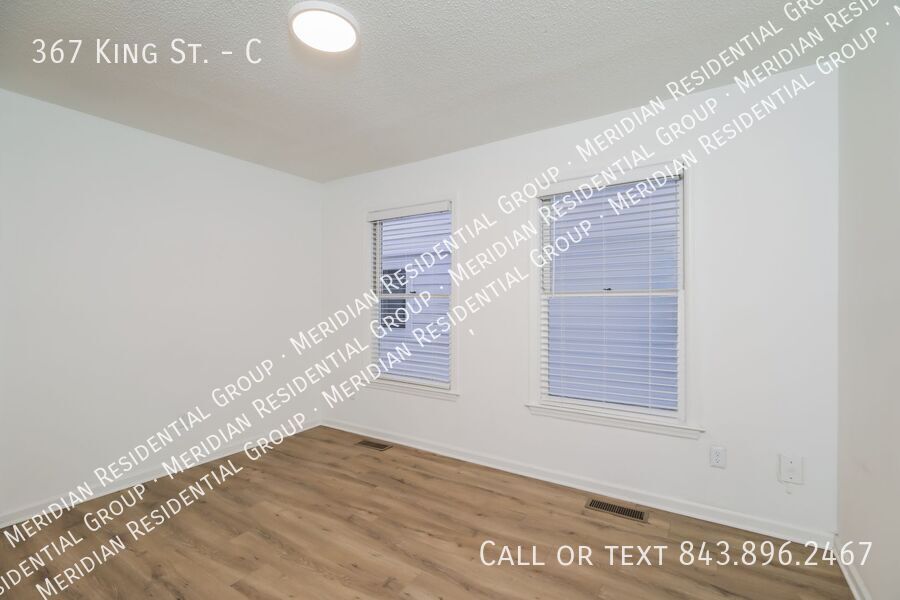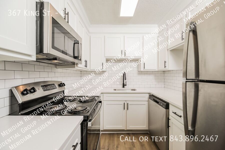Live just steps away from the College of Charleston at 367 King St. #C! This fantastic one bedroom, one bath unit offers the perfect blend of comfort and convenience in the heart of downtown! This unit features brand new LVP flooring throughout, giving it a modern and sleek look. The kitchen is a chef's dream, with stainless steel appliances, a beautiful tile backsplash, granite countertops, and a convenient pass-through to the living room. The offset dining space can easily fit a 4-6 person table or be transformed into a cozy office or study area. With entrances to the bathroom from both the dining area and bedroom, this unit offers maximum privacy and convenience. The bedroom is spacious enough to comfortably fit a queen size bed and full dress set, and includes a walk-in closet for all your storage needs. Located in a community with outdoor living space, a 24-hour fitness center, and onsite laundry facilities, you'll have everything you need right at your fingertips. Plus, being less than a block away from Marion Square, you'll be in the heart of downtown Charleston with a plethora of shopping and dining opportunities just waiting to be explored. Don't miss out on the opportunity to make this stunning unit your new home! Contact us today to schedule a viewing. DISCLAIMER: Applicant(s) must take occupancy within 14 days from the date of application or unit availability date. At Meridian Residential Group, we strive to provide an experience that is cost-effective and convenient. That’s why we provide a Resident Benefits Package (RBP) to address common headaches for our residents. Our program handles pest control, air filter changes, utility set up, credit building and more at a rate of $35.00/month, added to every property as a required program. More details upon application. In addition to RBP, we provide access to liability insurance that meets your needs. Please note this property is managed by Meridian Residential Group, rental applications and payments are only accepted online via our company website. Meridian will never ask for payment via Cash, Cash App, Venmo, PayPal, or any other third-party app. Contact us to schedule a showing. Courtyard Granite Countertops On Site Laundry Facility Walking Distance To Cof C