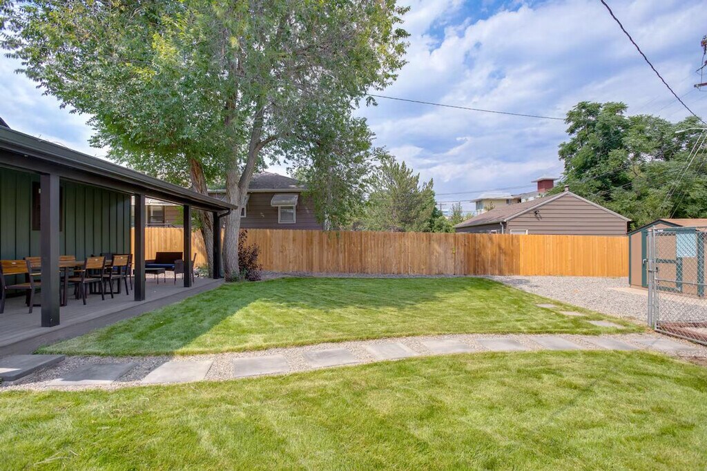 Feel at home in this 3-bedroom, 2-bath home in Englewood's Hospital District. This 2-story home offers step-free entry, with 2 bedrooms and 1 bathroom on the first floor. This home features a fenced backyard and a back porch with seating and a dining set. Entertainment is provided by TVs and board games. The kitchen is equipped with a refrigerator, stove/oven, dishwasher, drip coffee maker, toaster, microwave, dishware, flatware, trash bags, paper towels, a dining table, breakfast bar, and high chair. Additional amenities include free Wi-Fi, central air conditioning and heat, a washer/dryer, hangers, linens, and towels. Pets are welcome with a $50 fee (plus fees and taxes, 2 pets max). Parking is available in the front driveway (1 vehicle) and in a gated parking area (2 vehicles). Leave the car parked and stroll downtown using the nearby trail, or squeeze in a tennis match. The home is located in the Hospital District. Quiet hours are observed from 10:00 PM to 7:00 AM. There are two exterior security cameras: one is a Ring doorbell device with an exterior security camera facing the front outdoor entry, and the other is on the front of the home facing the parking area. The cameras do not look into any interior spaces and record video and sound when activated by motion. [SI]