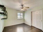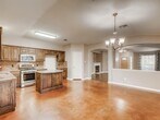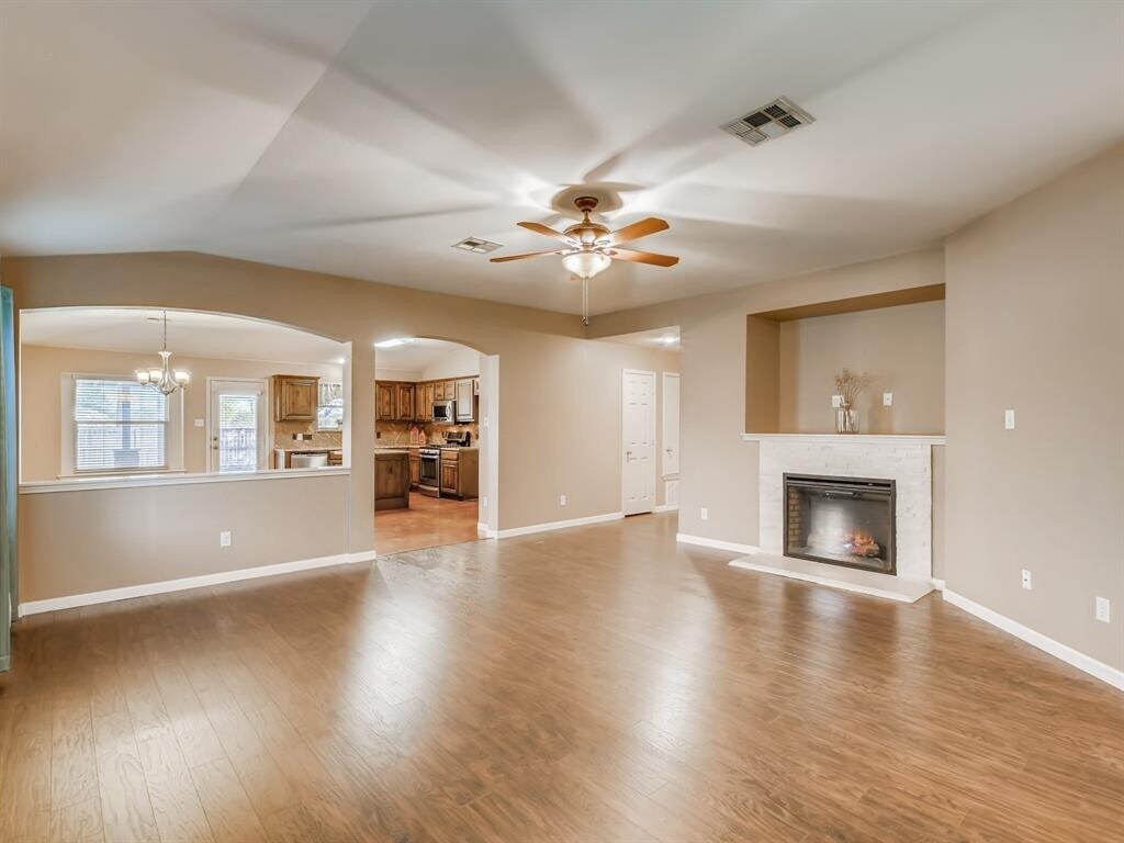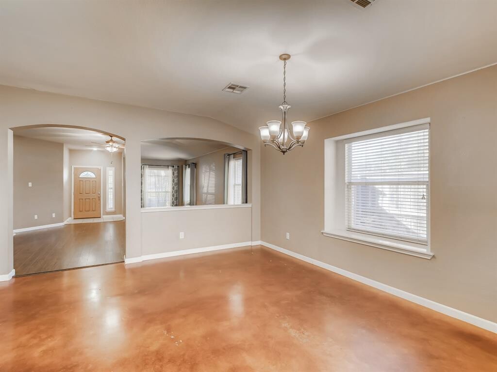 Homes like this don't come around often. This one stands out! Fabulous open floor plan, spacious family room, updated kitchen and baths, and no carpet. Easy-care laminate wood and stained concrete flooring. The kitchen features granite counters, stainless appliances, gorgeous cabinetry, center island and large breakfast area. Both baths have also been updated with the owner's bath featuring a stone-accent walk-in shower. Walk outside to the spacious backyard and you'll find a large covered patio with a built-in fire pit. Seriously, this has everything you want and it feels like home. Come see today.