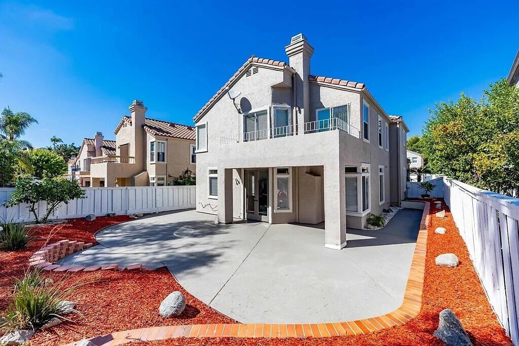 Exceptional Family Residence in a Wonderful Family Community! Spanning nearly 2600 sq. feet, this home includes 4 bedrooms along with an open den, and 3 full bathrooms located upstairs. It is just a short stroll to both elementary and middle schools. Nearby amenities include two expansive grassy park areas, a playground, a swimming pool area (complete with a spa and kiddie pool), and a clubhouse. The inviting front yard features appealing pavers and low walls, complemented by a small lawn. Upon entering, you will notice a spacious downstairs area, adorned with attractive wood plastic composite flooring, a tastefully painted interior, elegant light fixtures, and a fireplace in the family room, which offers a view of the lovely back patio. The home enjoys a sunny disposition, with the rear facing south. The kitchen is equipped with an island, stainless steel appliances, granite countertops, a charming backsplash, and an abundance of drawers and cabinets. The primary bedroom boasts a balcony with Trex decking, providing a perfect spot to unwind and soak up the sun. The primary bathroom includes a walk-in closet and a separate tub and shower. The laundry room is conveniently located upstairs, along with two full bathrooms, while a half bath is situated downstairs. The property also features a recently painted 2-car garage and air conditioning. Nestled in the Terra Mar community within the Ocean Hills area of southeast Oceanside, this residence is truly a delightful place to call home!