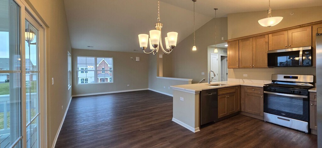 Luxury Apartment Home with private entrance. Featuring 2 Bedrooms and 2 Bathrooms with enormous closet space. End unit with plenty of light and cathedral ceilings. Modern cabinets with soft closed doors and drawers throughout the home including stainless steel appliances. Full size washer and dryer Included. 1 Car Garage available. Easy Access to Major Highways. Plenty of Shopping and Dining Near By! Pets welcome; subject to Pet screening. New Construction (Please note availability is dependent upon building completion and subject to final occupancy approval. Move-in dates subject to change.)