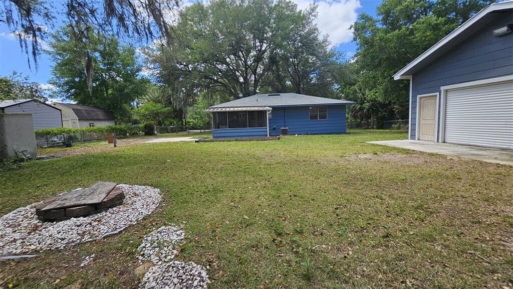 Charming and spacious home available for long-term rent on a beautifully shaded .34-acre fully fenced lot featuring majestic oak trees and plenty of outdoor space to enjoy Florida living. This inviting 2-bedroom,1-bath home offers a comfortable layout with a large primary bedroom and an equally spacious second bedroom. The kitchen comes fully equipped with all appliances included and opens seamlessly to the dining area,creating a welcoming space for everyday living. Newer ceiling fans with lighting packages are installed throughout the home for added comfort and efficiency. Step from the kitchen into a fully enclosed patio,which also houses the washer and dryer. One of the standout features of this property is the impressive detached shop/garage,offering over 575 square feet (24x24) with electric and water service,a 7x14 overhead door,front entry door,metal roof,and Hardie board siding,all situated on a concrete slab—perfect for hobbies,storage,workspace,or additional parking. The property also includes a 30-amp RV hookup with water connection and concrete pad,providing even more versatility for tenants with recreational vehicles or additional needs. Conveniently located near The Villages and Lady Lake,this home offers easy access to shopping,dining,hospitals,and recreational opportunities,as well as the nearby Harris Chain of Lakes for outdoor enthusiasts. This unique rental offers space,functionality,and convenience—schedule your showing today! MLS# OM722596