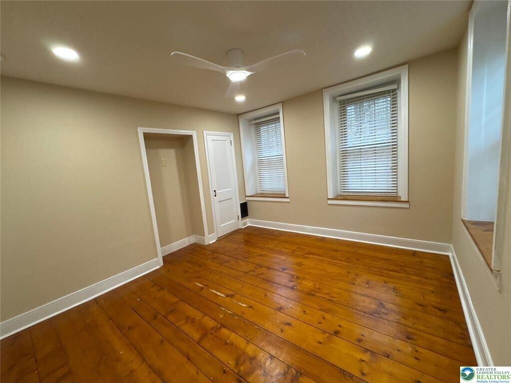 Charming Stacked stone Farm house 3-bedroom, 1.5-bath home in Hellertown, PA, featuring wood floors and an oak kitchen with corain countertops. The property offers a spacious layout with ceiling fans and LED lighting , plus central heat for year-round comfort. A two-car garage and additional off-street parking provide convenient vehicle storage, while a large yard offers outdoor space for recreation. Well-maintained and move-in ready, this home combines classic finishes with functional amenities.