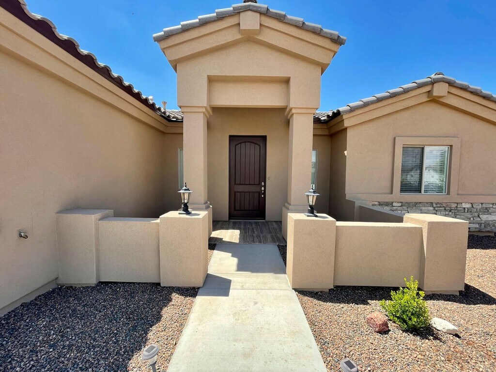 Come check out this gorgeous house in the exclusive Castle Rock Village gated community today. This house features custom tile floors and carpet throughout the house. This immaculate homes has beautiful detail throughout, from the custom tile showers in both the master bathroom and guest bathroom to the fully finished beautiful backyard perfect for entertaining or relaxing. Open kitchen and living room concept for easy interaction. The kitchen features quartz countertops and stainless steel appliances. Large pantry. Split floor plan for privacy in the master suite. The master suite features a large bedroom and large master bathroom with 2 sinks, large walk in closet and custom shower. The amenities for this house are one of a kind for the Kingman area. This home is in a private gated community with a community center. The community center includes, large fitness center, rec room with table pool and ping pong, full kitchen and a beautiful swimming pool, outside gazebo area and outdoor bbq. These amenities are all included with this house. Give us a call today at for details or visit our website at for more information and to APPLY NOW! Minimum 700 Credit Score. $3,450 Security Deposit. *Inquire about our Security Deposit alternative* No Co-Signers. *Applications must be done through . Applications done through third party sites are not received.