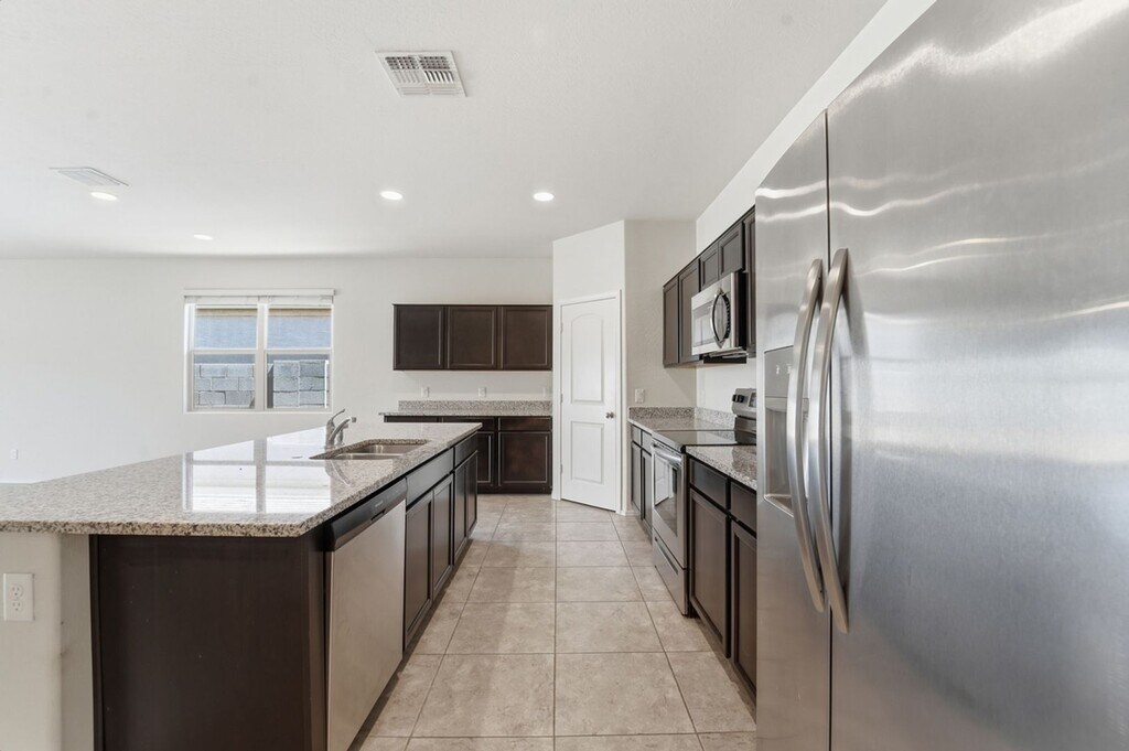 Welcome to this beautifully maintained home located in the highly desirable Sorrento community in the heart of Maricopa. Offering 3 bedrooms and 2 bathrooms, this home delivers a functional layout, modern finishes, and easy everyday living. Step inside to a bright and open interior featuring a spacious living area and a well-appointed kitchen with granite countertops, stainless steel appliances, and ample cabinet storage. Whether you're preparing meals or entertaining, this kitchen is designed for both style and practicality. The primary suite offers a comfortable retreat with a private en-suite bathroom and a generously sized closet. Two additional bedrooms provide flexibility for guests, a home office, or additional living space. The home also includes an interior laundry room with washer and dryer included for added convenience. Enjoy a low-maintenance backyard, ideal for relaxing or outdoor dining without the upkeep. Located in the sought-after Sorrento community, residents have access to a variety of amenities including parks, splash pads, tennis courts, and walking paths. Conveniently situated near local shopping, dining, and commuter routes, this home offers both comfort and accessibility. Don’t miss the opportunity to make this well-located and move-in ready home yours. -- Pet Policy: Pets are welcome with an additional $250 refundable cleaning fee, per pet. Application: $45 nonrefundable application fee per adult (18+). Combined gross income must be at least 2.5x the monthly rent. Full criteria available on our website. Lease Terms: Minimum 12-month lease. No smoking. Move-In Costs: Earnest deposit equal to the security deposit ($1,850) due upon approval. $250 lease preparation fee and first month’s rent due prior to move-in. Monthly Costs: $1,695 base rent + 3% admin fee ($50.85) = $1,745.85 / Month Renter’s insurance required. Tenant responsible for landscaping and all utilities. Must abide by city & hoa regulations and terms. Additional Disclosures: Real Estate Brokers of Arizona complies with all Fair Housing laws. Information deemed reliable but not guaranteed and subject to change. Submission of information constitutes consent to communication via phone, email, or SMS through the Property Manager and its platforms.