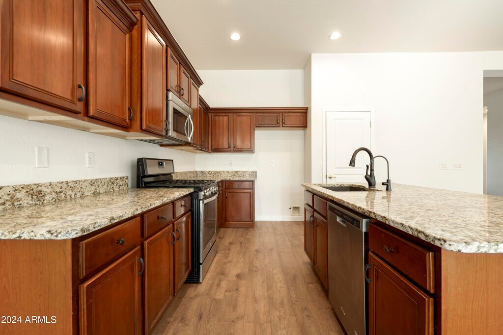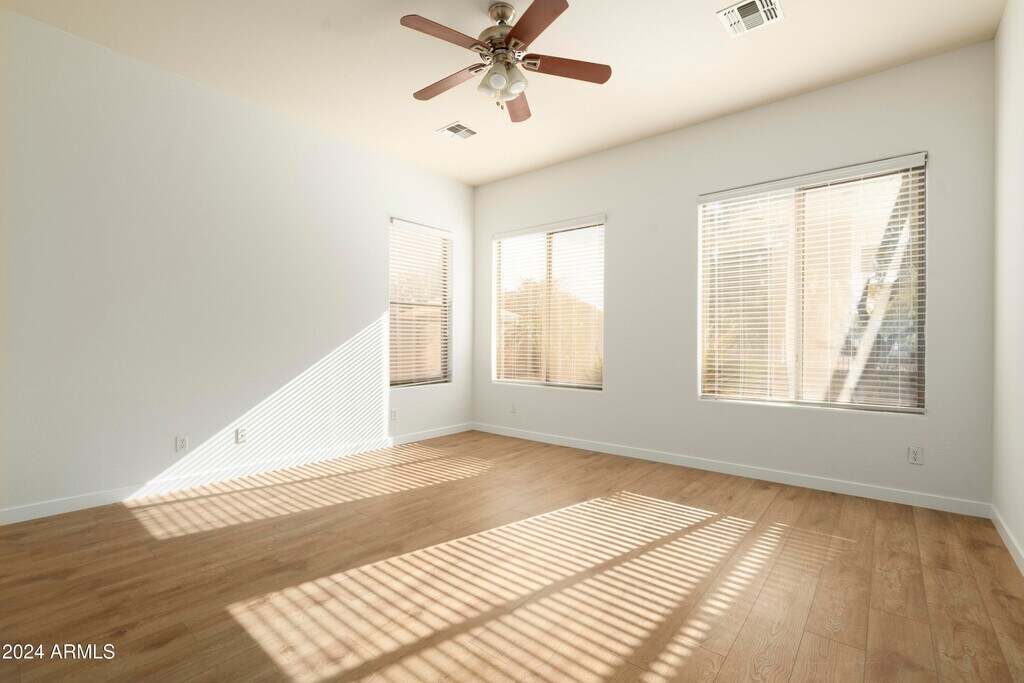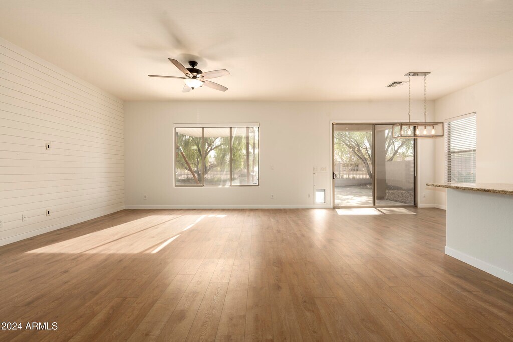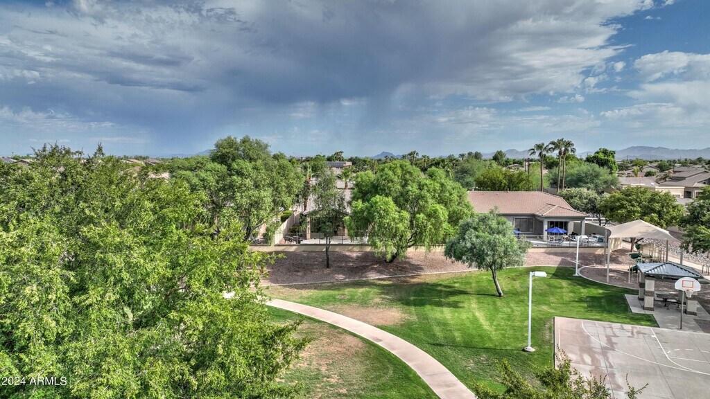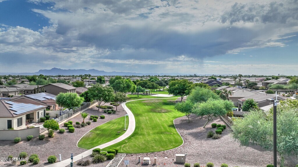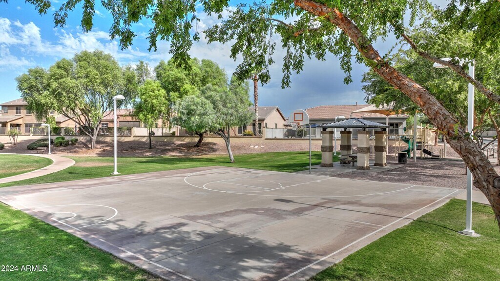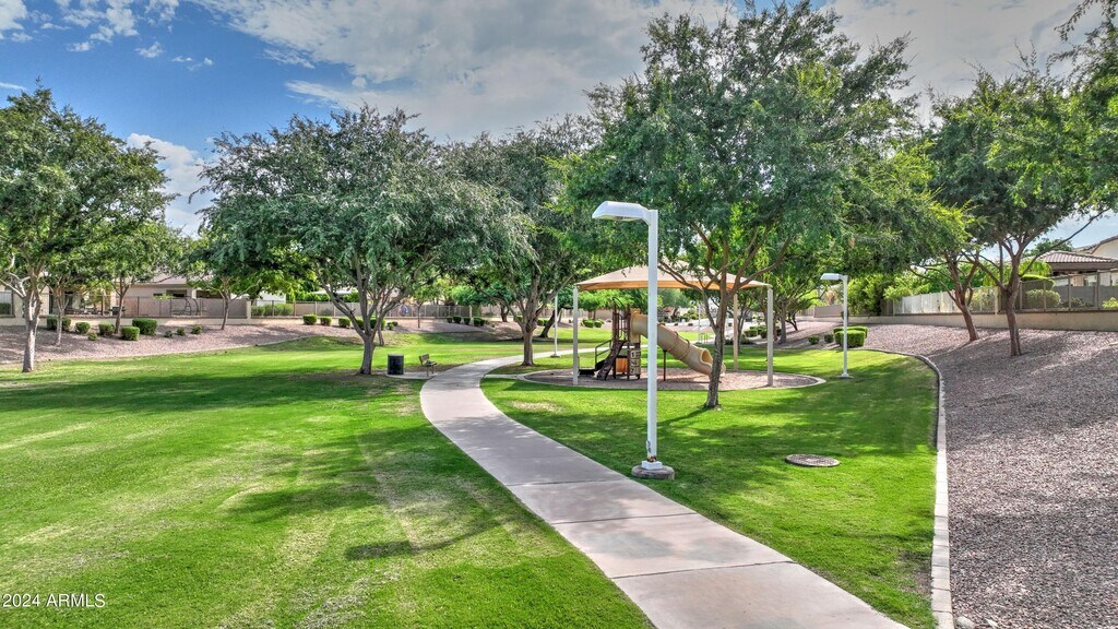 This beautifully maintained 3-bedroom,2-bathroom home is nestled in a quiet,secluded community. The spacious,open floor plan,with its high ceilings and ample natural light,creates a warm and inviting atmosphere,perfect for both relaxed living and entertaining. The backyard is surrounded by lush landscaping,featuring an expansive patio with a BBQ area ideal for gatherings,while the swing set and play gym keep the kids entertained. Just minutes from the Epicenter and Agritopia,you'll have convenient access to Gilbert's best dining and shopping options,making this the perfect place to call home. Includes a brand new fridge and washer/dryer.