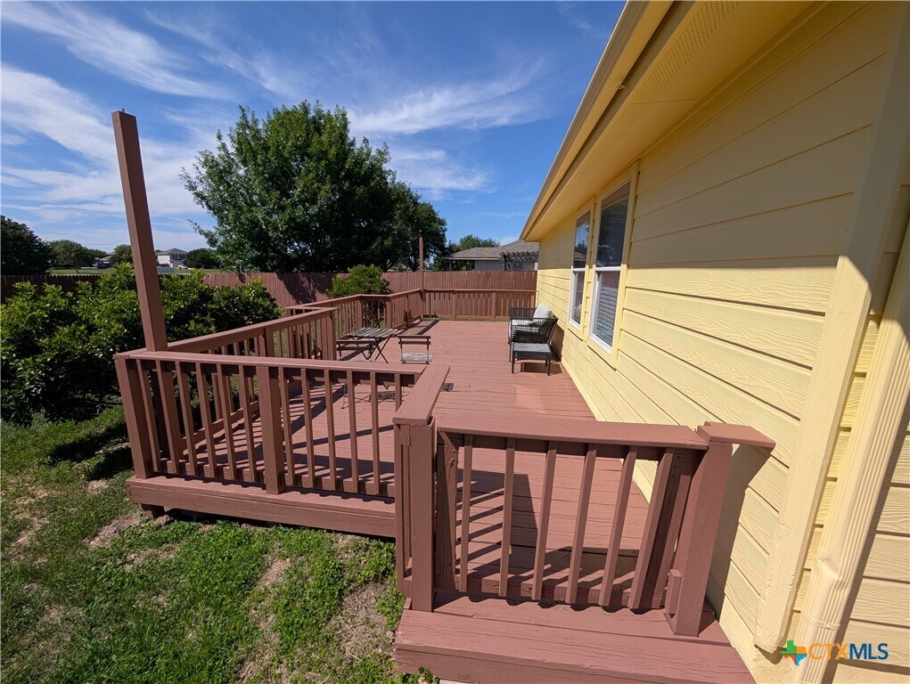 3/2/2 in Quail Valley. Great location for commuters,easy access to IH 35. Owner pays to mow and trim the yard. Close to Creekside Shopping,Restaurants,& Entertainment. Flooring is a mix of vinyl & ceramic tile. Kitchen features: fridge,dishwasher,built in microwave,stove/oven range electric,Recessed lighting,& a pantry. Other Features: ceiling fans,shower/tub combo,washer & dryer included,& a auto garage opener. Large deck in the backyard. Fenced in backyard. Uncovered patio leading to the backyard deck. CISD. 1 pet max,dogs over 1 year,50 pound weight limit,cats must be spayed/neutered. *One month free rent*