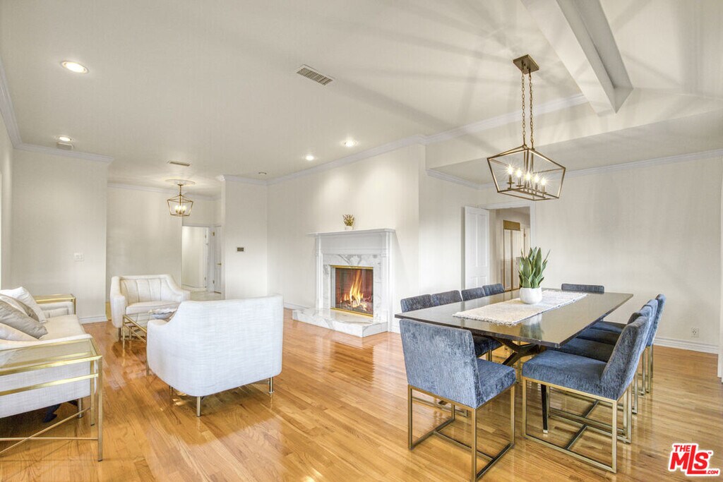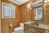 Privately set within the coveted Royal Woods enclave of Sherman Oaks, this mid-century Traditional estate offers a rare blend of architectural character, refined design, and resort-style living. Mature citrus and avocado trees frame the property, creating a lush, serene setting that feels worlds away yet remains moments from the city. The interiors unfold with a graceful sense of flow, where open, light-filled living spaces transition seamlessly for both everyday comfort and elevated entertaining. The grand living room is anchored by a fireplace and enhanced by wood floors, crown molding, soaring ceilings, and expansive wraparound windows capturing sweeping mountain views. At the heart of the home, the chef's kitchen makes a bold statement with custom cabinetry, premium appliances, high-end granite surfaces, and a custom stainless steel hood and bar highlighted by a striking geostone countertop showcasing 50-million-year-old fossilized fish, a true conversation piece. Two luxurious primary suites offer flexibility and privacy, including a secluded second-level retreat with a spa-inspired bath featuring a Victoria + Albert soaking tub, steam shower, granite countertops, Columbia cabinetry, framed mirrors, and a dedicated makeup vanity. A custom second-floor landing with built-in cabinetry and desk creates an ideal home office or study. The main-level primary suite features an elegant en suite bath with separate tub and shower, granite counters, and custom window treatments. Completing the first floor are three additional bedrooms, three bathrooms, a powder room, a warm den with fireplace, wine bar, and a dedicated laundry room.Designed for the quintessential Southern California lifestyle, the home opens to an exceptional outdoor entertaining environment. The resort-style backyard features a fully appointed outdoor kitchen with a 48 DCS barbecue, prep and sink stations, refrigerator, dishwasher, stainless steel cabinetry, big-screen TV, and pergola with integrated heater. A half basketball court, pool and spa, fire pit, and thoughtfully layered landscaping accented by Bouquet Canyon stone and lush greenery create a private, tranquil retreat. Offering the perfect balance of retreat and connection, this Royal Woods residence delivers a lifestyle defined by comfort, sophistication, and ease. Tucked within one of Sherman Oaks' most desirable neighborhoods, the home is moments from highly regarded schools and Ventura Boulevard's vibrant dining and shopping scene, with easy access to the Westside presenting a rare opportunity to enjoy peaceful living without sacrificing proximity to the best of Los Angeles." MLS# 25630415