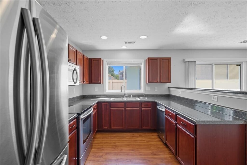 Desirable Bridgetowne subdivision with great amenities. Just minutes off GA 400 you will find this great 3 bedroom,2 1/2 bath beauty with fenced yard,fresh paint,hardwood floors on the main,open concept home. Large kitchen with stainless appliances,tons of cabinets,open to the dining area and family room with corner fireplace. Large primary suite upstairs with huge closet,2 additional bedrooms,spacious laundry room and more. Amenities included - tennis courts,pickleball courts,pool,fitness center,basketball court and clubhouse. Shopping and dining just outside the subdivision,great schools. Yard maintenance and trash are included too!