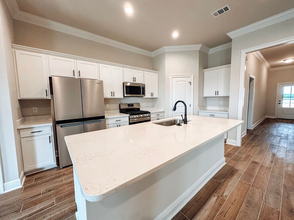 Introducing this 3/2 House in The Bluffs at Lafayette, located in the desirable Freeport, FL. This stunning home offers a modern and spacious open concept floor plan, perfect for entertaining guests or simply enjoying quality time with loved ones. With three bedrooms and two bathrooms, there is ample space for everyone to relax and unwind. The two-car garage provides convenient parking and additional storage options. Step inside and be greeted by the sleek and stylish luxury vinyl plank flooring that flows seamlessly throughout the entire house. The kitchen is a chef's dream, featuring new stainless steel appliances and a convenient kitchen island, ideal for preparing delicious meals. Built-in panty shelving adds great functionality. The master bathroom is a true oasis, boasting a soaking tub and a separate shower, allowing you to indulge in a spa-like experience in the comfort of your own home. The double vanity offers plenty of space for all your personal essentials. With ceiling fans, you can stay cool and comfortable year-round. Don't miss out on the opportunity to make this beautiful house your new home. Experience the perfect blend of style, comfort, and convenience at the Brand New 3/2 House in The Bluffs at Lafayette. This is not a pet friendly property. A one-time $100 lease preparation fee applies.