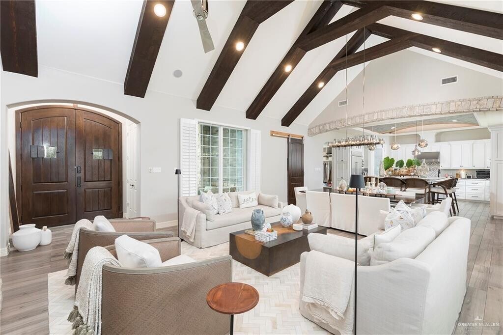 This beautiful French Country Style Farmhouse sits on a Half Acre Lot. Built in 2016. Featuring high decorative wood beam cathedral styled ceilings and a multi-functional opened concept space complete with a real wood burning fireplace. Gourmet style kitchen equipped with a gas stove and two spacious islands. Lots of custom cabinetry,walk-in pantry and wine rack. All appliances,stainless steel by Kitchen aid including the built-in double door refrigerator. The Master bedroom with sitting area,and a spa-like bathroom together with unique custom walk in closet,vanity and shoe racks. The additional 3 bedrooms are located downstairs each with their own bathrooms. In addition there is an office and a bonus room that could be a guest quarter,media room or mancave. The yard is a paradise,with outdoor kitchen and a heated pool. You are sure to create lots of memories with your family and friends. Masonry fence to add privacy. Surrounding Security Cameras & EV charging station.