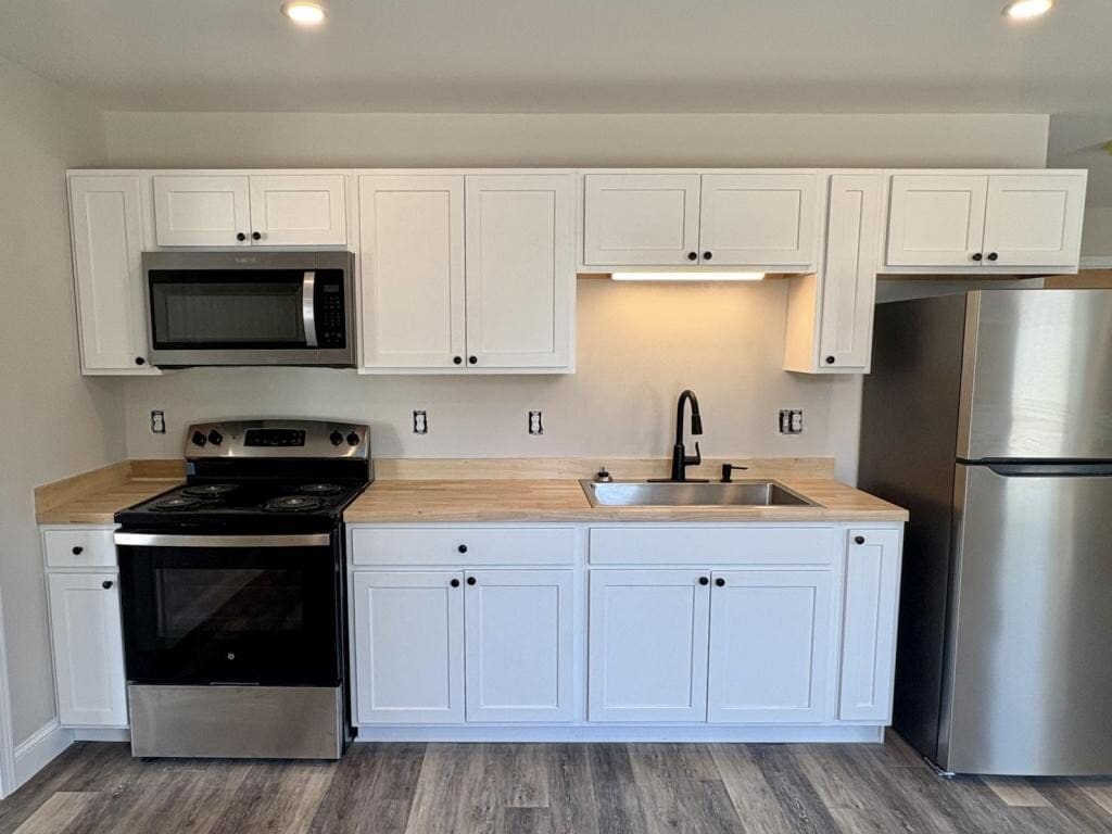 Discover the perfect blend of modern living and comfort in this stunning 1-bedroom, 1-bathroom unit located in a brand-new 9-unit building in Sanford. With its contemporary design and high-quality finishes, this home is ideal for anyone seeking a stylish and functional space. Step inside to find an inviting open floor plan, featuring new flooring that adds warmth and elegance throughout. The fully equipped kitchen boasts butcher block countertops and comes complete with a stove, fridge, and microwave, making meal preparation a delight. This thoughtfully designed unit not only offers a cozy living environment but also includes a dedicated storage unit for your convenience. Enjoy the freedom of personalizing your space while taking advantage of the modern amenities that enhance everyday living. With smoking prohibited in the building, you can relish in a clean and fresh atmosphere that promotes a healthy lifestyle. Enjoy the convenience of on-site coin-op laundry facilities as well! Located in a vibrant community, this home is pet-friendly, allowing you to bring along your furry companions. Experience the charm of Sanford, with its local shops, parks, and recreational opportunities just a stone's throw away. Don't miss out on this exceptional opportunity to make this beautiful unit your new home. Schedule a tour for all units today and see for yourself the comfort and convenience that awaits! Pet Friendly with Approval and Pet Rent NO SMOKING Minimum qualifications: Gross monthly household income meets or exceeds 3x monthly rental rate. Credit check is completed and score should be 600 or higher. 1st month's rent and 1 month security deposit required to hold the apartment. Rent includes storage unit, sewer, water, landscaping, snow removal. Please apply online at: