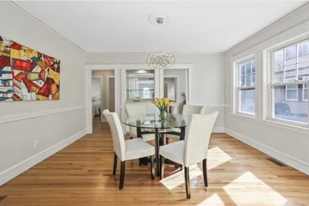 Beautifully renovated 2-bed,1-bath condo rental offering easy single-level living with hardwood floors throughout. Sun-filled living room with bay windows and recessed lighting. Stylish kitchen with granite countertops,stainless steel appliances,gas cooking,and deck access. Formal dining room with custom built-ins. Two spacious bedrooms with ample closets. Updated tiled bath. Features include in-unit laundry,central air,gas heat,sunroom,and insulated windows. Detached garage plus off-street parking. Pet-friendly. Convenient to public transportation,shopping,parks,and major highways. *Electric car charger* Available now and easy to show. MLS ID 73507529