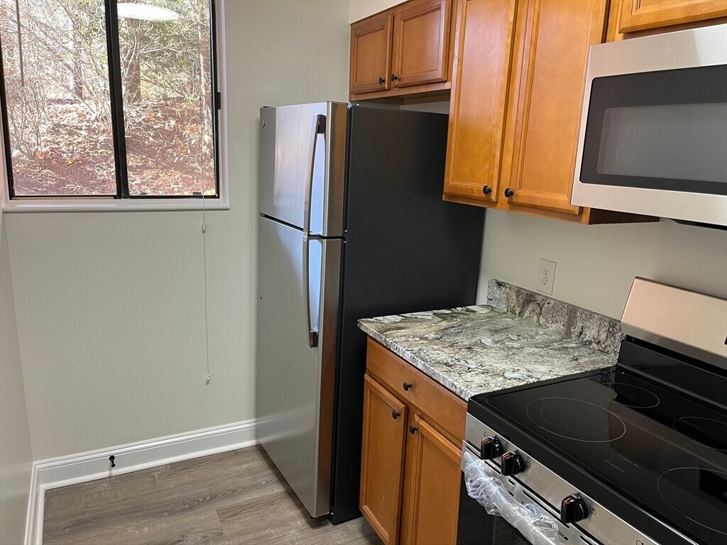 Rental opportunity in sought after Highwood Estates! This 2 bed/1.5 bath townhouse is ideally located close to all Franklin amenities. Enter the first floor via a spacious tiled entryway with double closets,leading into a generous living room with electric fireplace and space for a dining area,plus a slider to your private patio with outdoor storage shed. Kitchen has been recently upgraded with brand new stainless steel appliances and granite countertops. An upgraded half bath completes the first floor. Upstairs,find a large primary bedroom with dual closets with and a Hollywood Bathroom with double-sink vanity and a second bedroom with walk-in closet. The laundry room area and linen closet complete this level. An electric heat pump provides efficient heat and central air to keep you comfortable in all seasons. MLS# 73469277