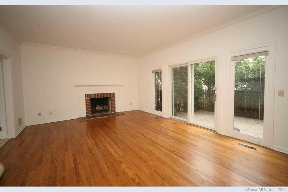 Call for Availability - Welcome to this stately, sun-filled brick townhome, built by renowned builder the late Archie Stewart, celebrated for quality construction, generous room sizes, and exceptional storage. Tucked within a quiet, private enclave, this residence offers an ideal blend of classic charm and everyday convenience. The spacious living room, centered around a fireplace, opens directly to a private patio, perfect for outdoor dining, relaxing, or entertaining. Upstairs, you'll find two large ensuite bedrooms, including a gracious primary suite, both featuring abundant closet space, plus the ease of second-floor laundry. Additional highlights include a full walk-up attic, full basement, central air conditioning, central vacuum, and a security system. Extra parking is available in the St. A's parking lot. Best of all, you're just a stone's throw from New Canaan's unique shops, award-winning restaurants, and the Metro-North train. A rare opportunity for comfortable, low-maintenance living with space, light, and storage to spare, right near the village of New Canaan. St. Aloysius' priests live in the adjacent unit. MLS# 24157929