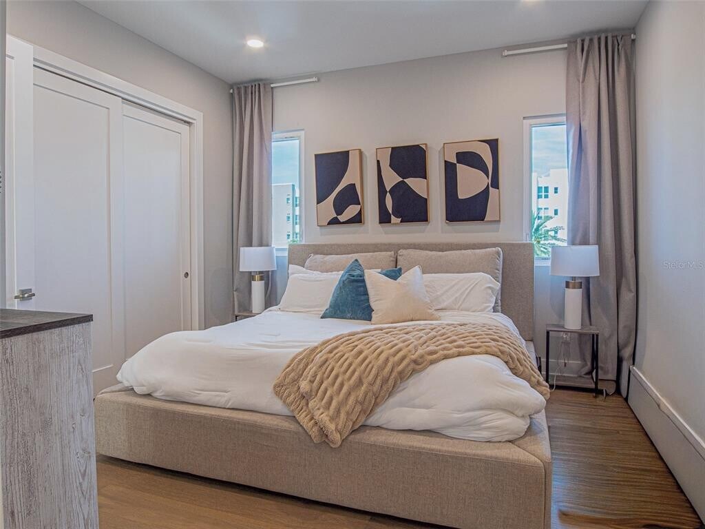 LOCATION LOCATION LOCATION! Modern luxury meets downtown St. Petersburg living in this stunning 2023-built townhome. Offering 2 bedrooms and 2.5 bathrooms,this light-filled townhome features soaring ceilings,expansive windows and thoughtfully selected high-end finishes throughout,as well as an attached garage. An open-concept layout showcases a sleek kitchen with premium appliances,quartz countertops,and a spacious island with seating - perfect for entertaining. The primary suite occupies its own level,providing ultimate privacy with generous closet space and a beautifully appointed ensuite bath. The top floor features a second primary-style bedroom along with access to a private balcony overlooking the city skyline. Additional highlights include hardwood flooring throughout,a private fenced backyard,and extra storage in the garage. Ideally located within walking distance to everything downtown St. Pete has to offer,including dining,nightlife,and the arts,and just a short drive to the area’s award-winning beaches. Pets are welcome with owner approval,with a $500 non-refundable fee per pet. First month rent + one-month security/damage deposit is required upon application approval. All applications are online on RentSpree or Zillow. Schedule your private showing today! MLS# TB8497393